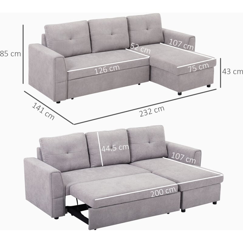 Sink into comfort and welcome style into the home: choose this click clack sofa bed from HOMCOM. The three-seater size is spacious for you and friends, with the ‘L’ shape corner design giving a touch of extra leg room – perfect for stretching out and resting on. Filled with thick sponge for comfort, the couch also converts into a recliner sofa bed, so you give overnight guests a plush place to sleep. Finished with handy under-seat storage, so you can keep your space tidy and clutter free.