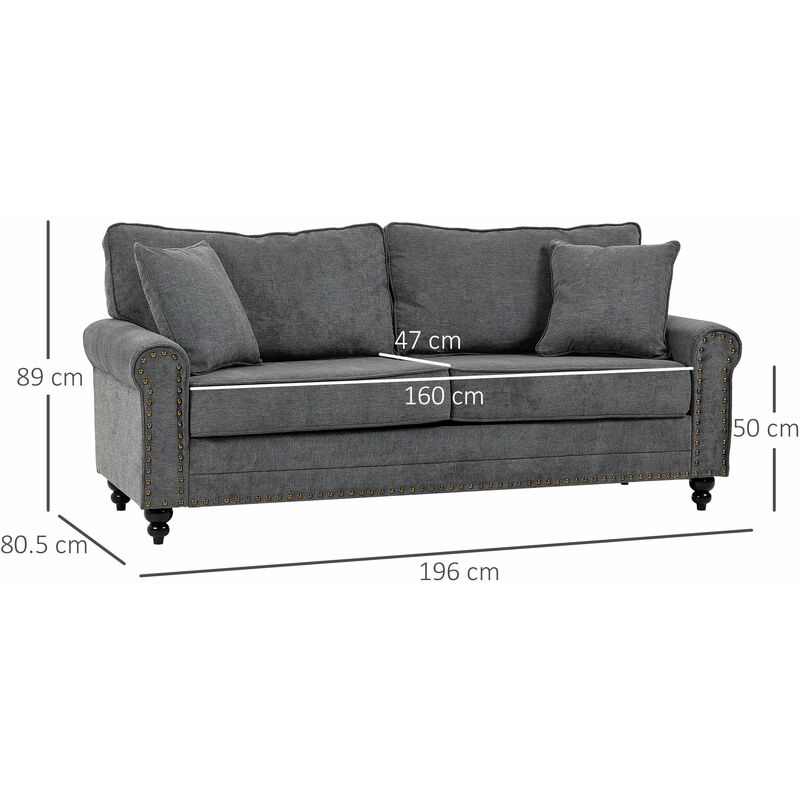 A small couch which doesn’t skip the comfort. This HOMCOM piece is great for all rooms, no matter how big or small. The three-seater size provides enough room to relax with company or by yourself. Thickly padded on the seats and backs, with two cushions included for comfort. Wooden legs offer plenty of support. Linen-look upholstery looks great, with stylish studding on the front to complete.