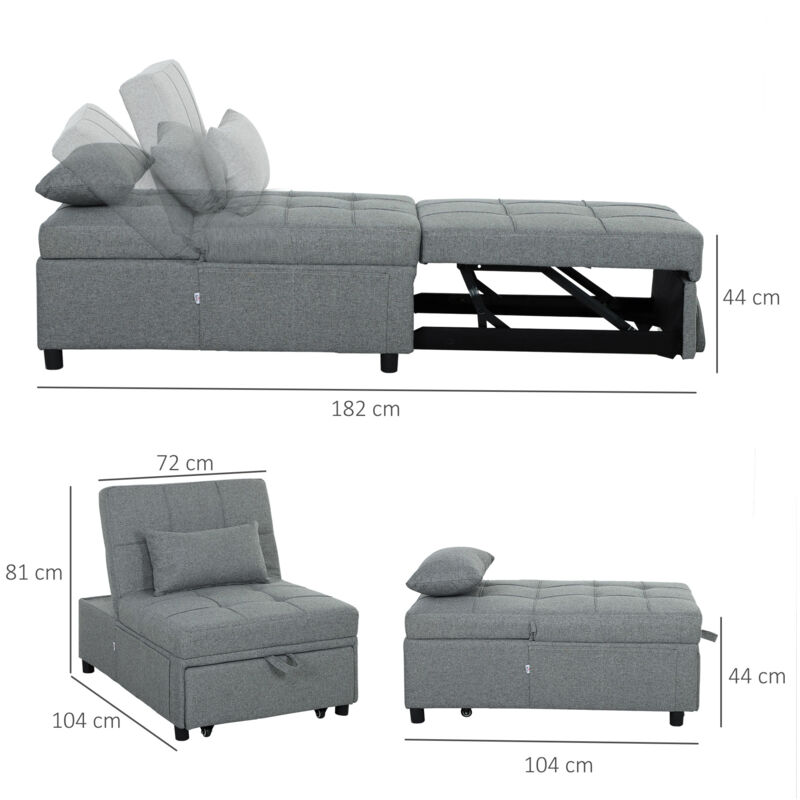 Whatever the space, and whatever you need, this HOMCOM folding chair bed. Its multi-use design switches between a recliner chair, chaise lounge, 182cm bed and footrest, so you can use it for plenty, both day and night
