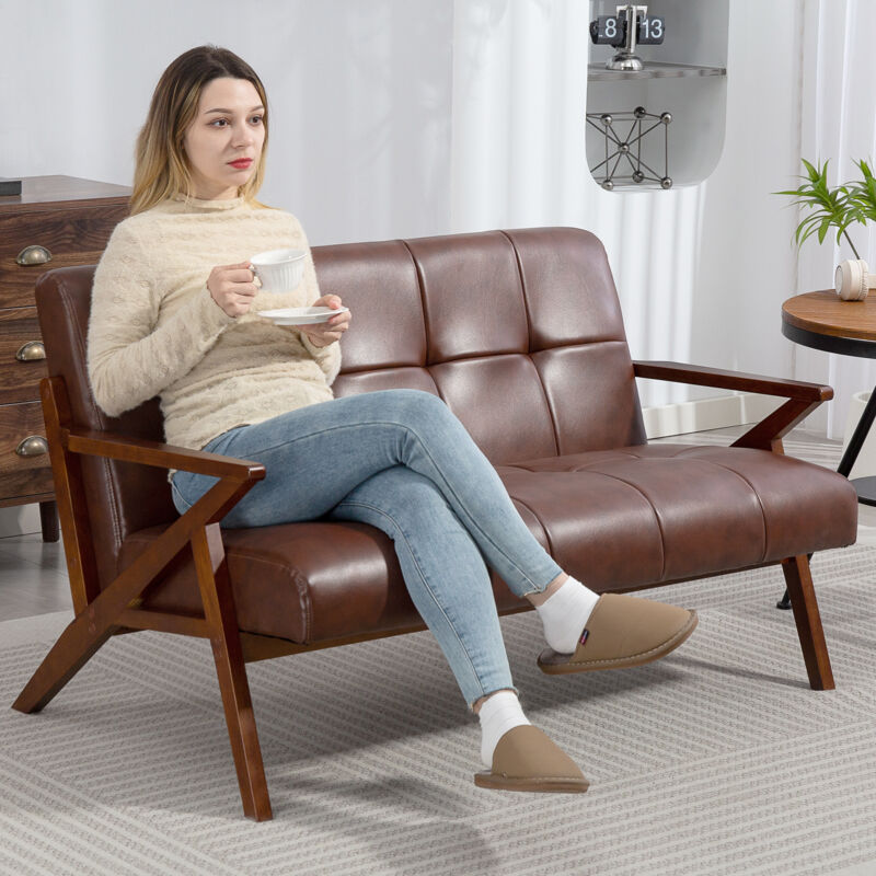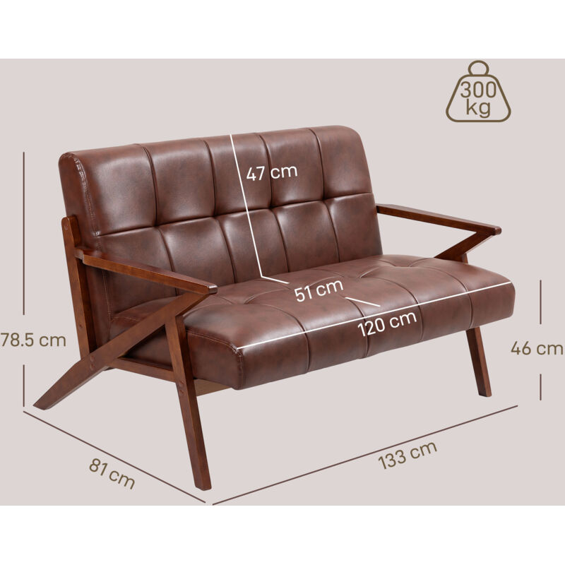 HOMCOM Compact Small Sofa with Solid Wood Frame, Vintage 2 Seater Sofa Brown