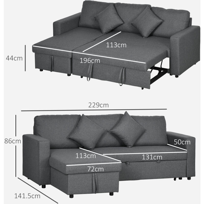 When unexpected guests arrive, or if a gathering continues past midnight, this sofa bed form HOMCOM come in handy. You can relax with the family through two seater sofa and chaise lounge, or give your guest a good night’s sleep to pull out the legs of sofa to turn into a bed. This corner sofa bed with hidden storage is also a space-saving option for smaller homes, it provides all the comfort of a sofa and the convenience of a cosy bed. Sit back and relax in HOMCOM living room sofa set.