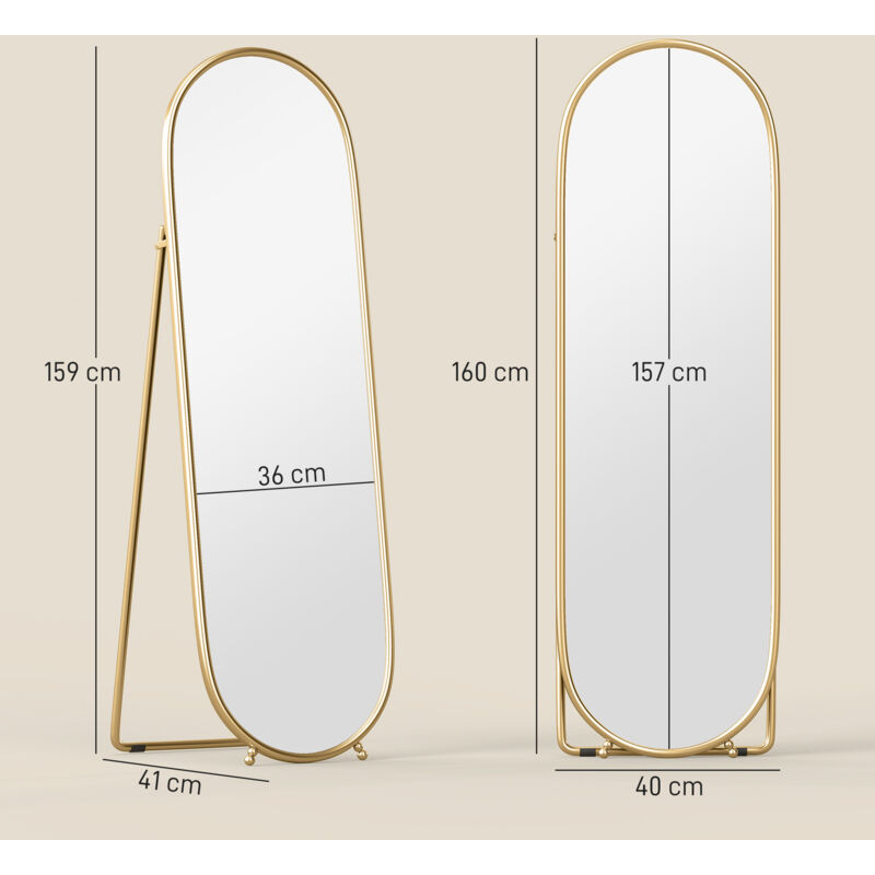 Let the beautiful design of this HOMCOM mirror make getting ready even more enjoyable. Look at the smooth curved shape and coloured frame – bringing a touch of elegance into your space. The design can be used two ways – standing with the back leg or leaning against the wall