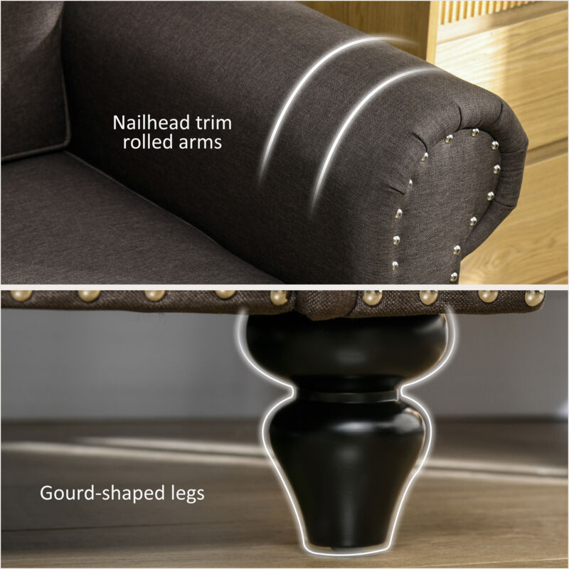 Take comfort back a touch with this HOMCOM Mid-Century sofa. The simple, slightly retro design brings a touch of old school character into your space. Filled with 14cm foam padding for comfort, with pocket springs to keep it firm and help retain the shape. Look to the metal studs on the arms for a polished edge. The love seat is complete with wooden legs for strong support.
