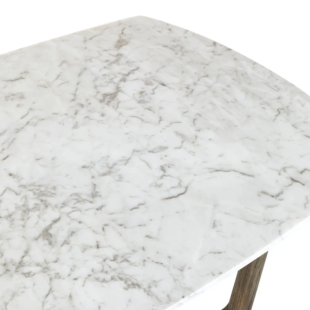Softly rounded, the Italian Carrara marble top features delicate white and grey veining that makes a stylish statement.