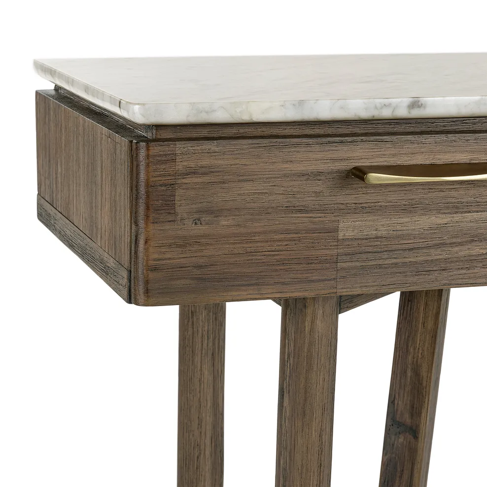 Art deco Islington is made from wire-brushed dark acacia and benefits from three handy storage drawers for all your stationery essentials. Together with brass-coloured accents, the exclusive design€™s geometric-inspired legs create an eye-catching silhouette.