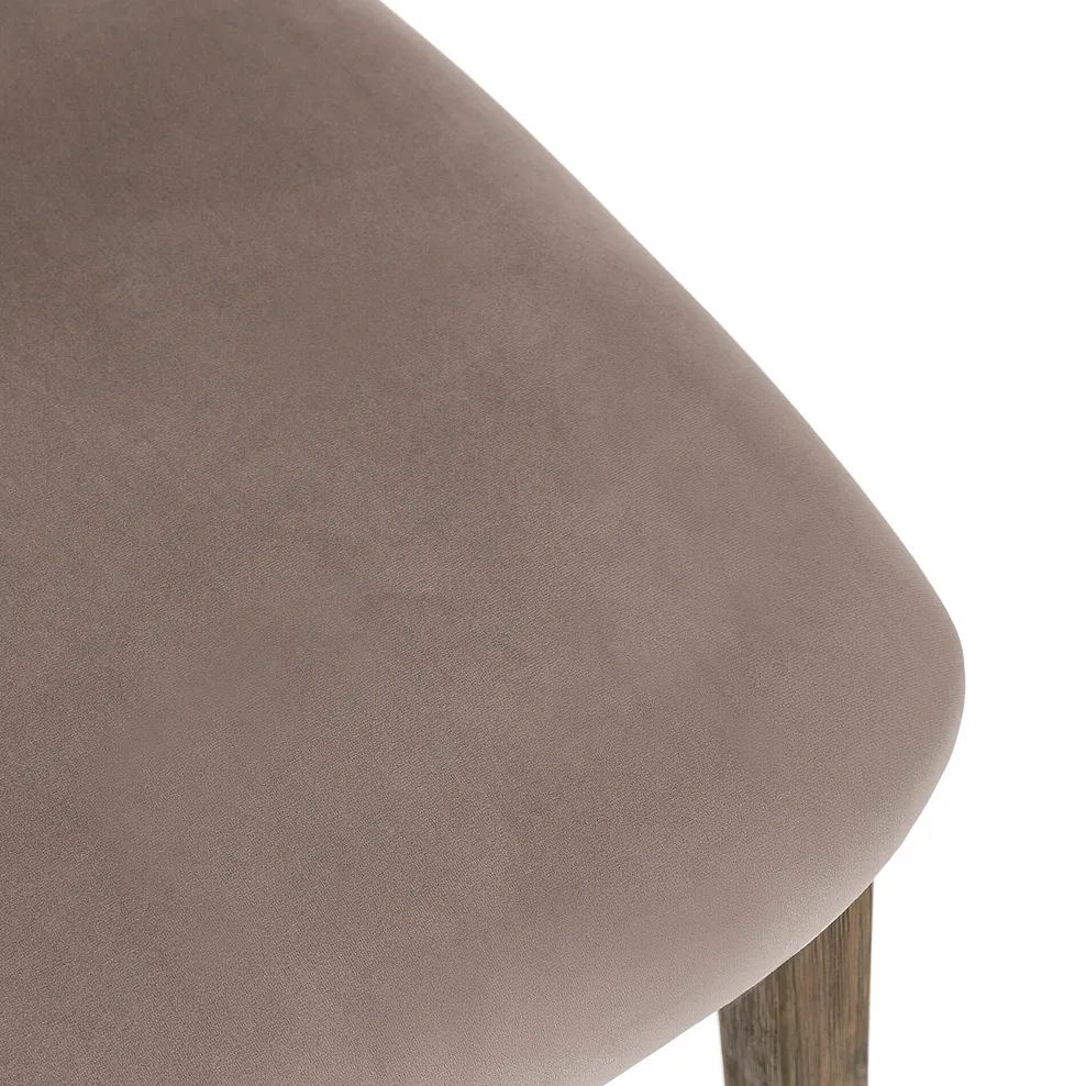 The statement-making set comes with four Isla chairs that are upholstered in fossil grey velvet fabric with a matching dark-toned acacia frame to complete the look.