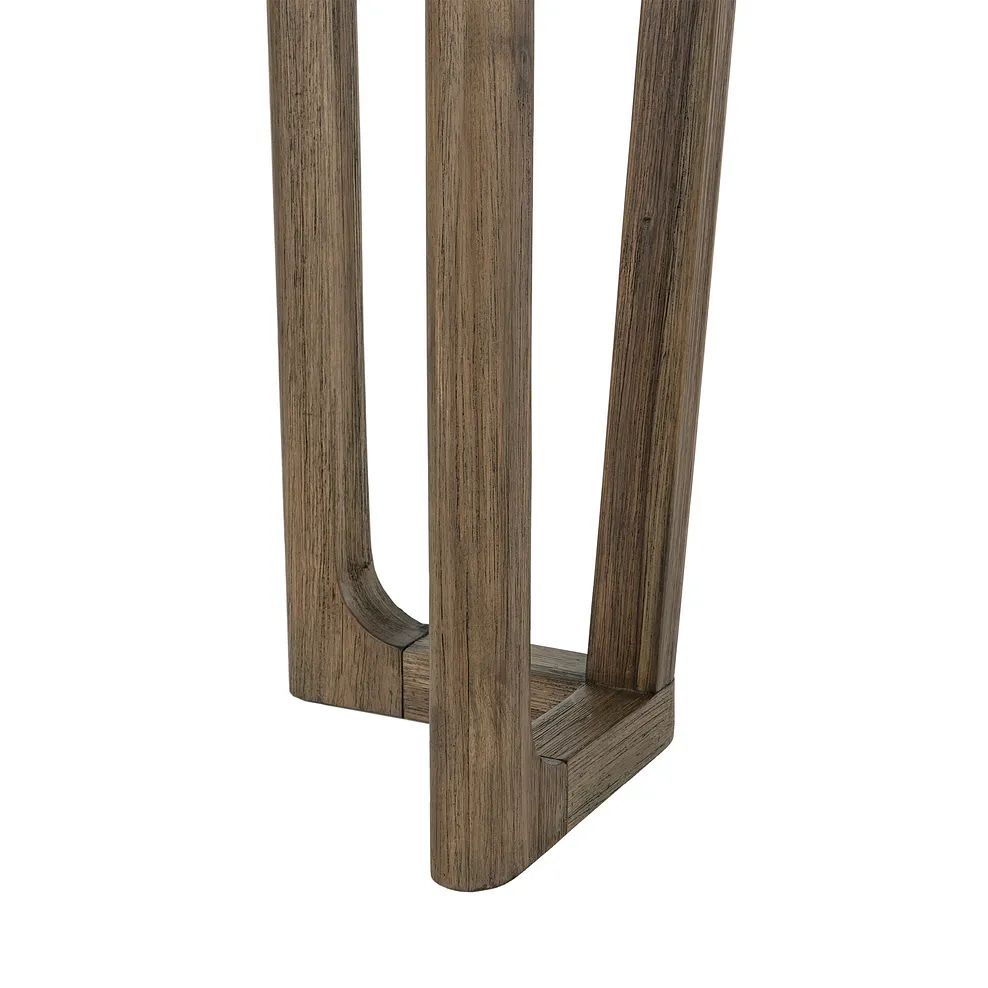 The wire-brushed dark acacia is complemented by geometric-inspired legs that elevate the style-forward design, with brass-coloured accents adding an art deco finishing touch.