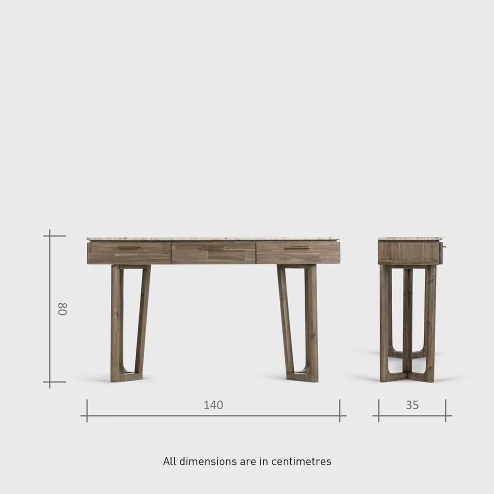 The polished natural marble top, complete with delicate white and grey veining, offers beautiful surface space for all your favourite fragrances and beauty products, while the three drawers provide handy storage.