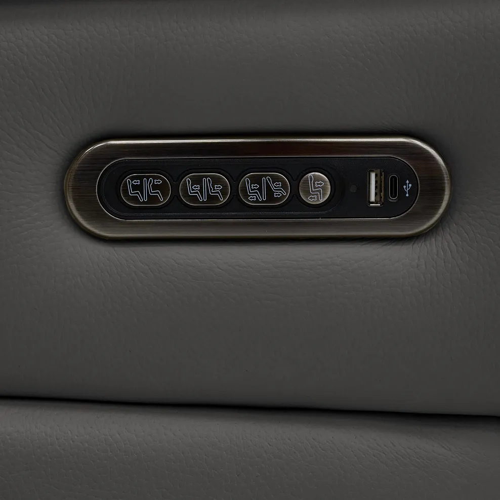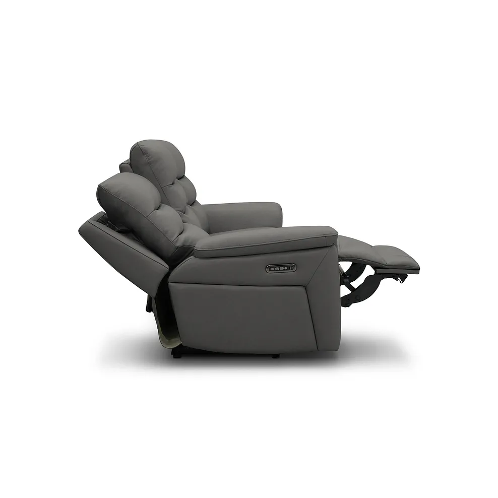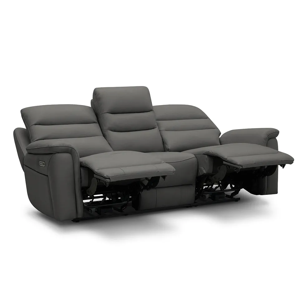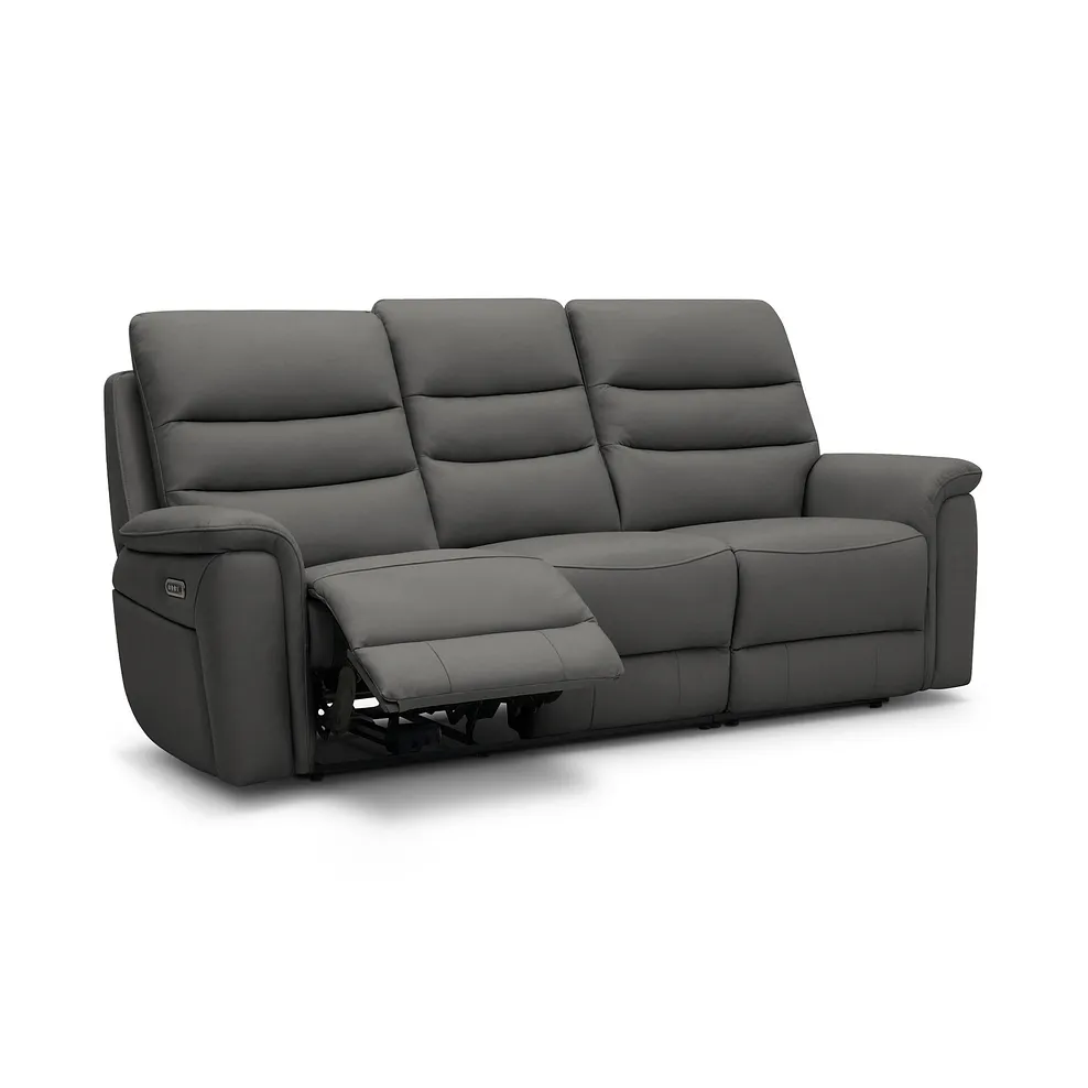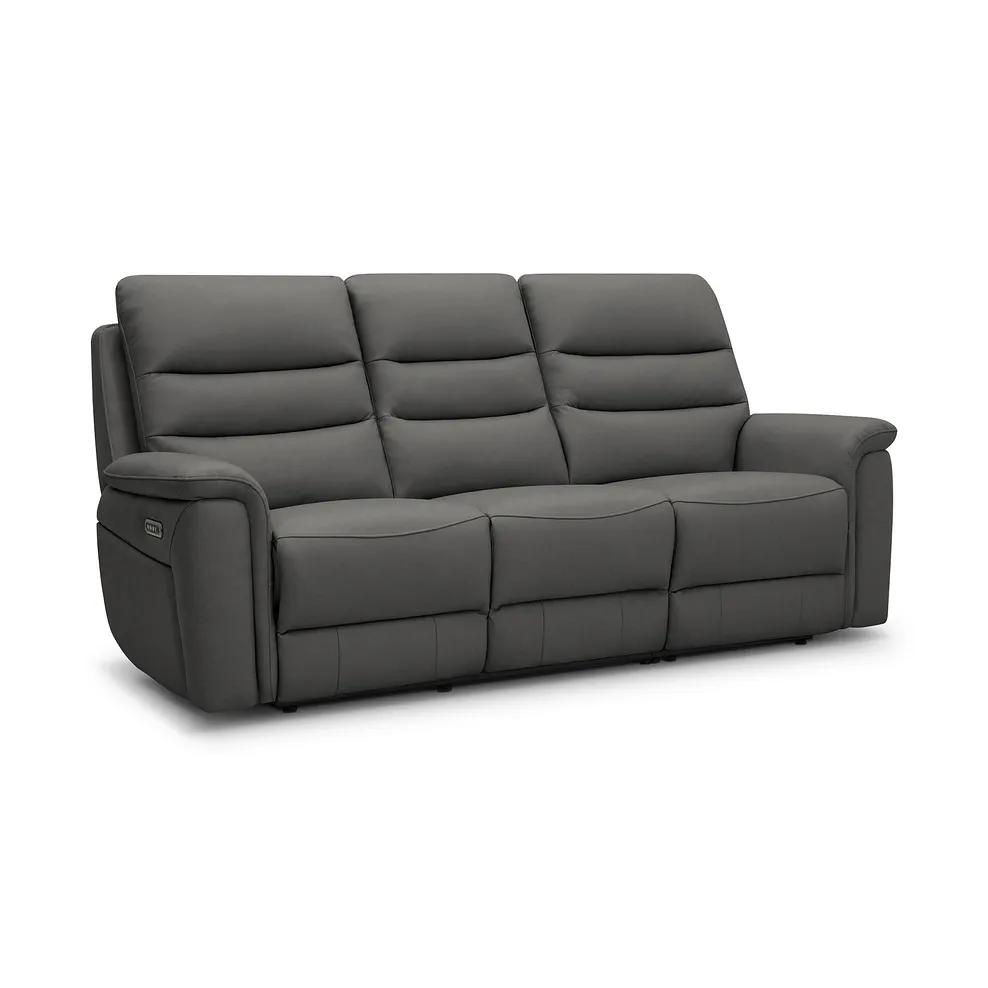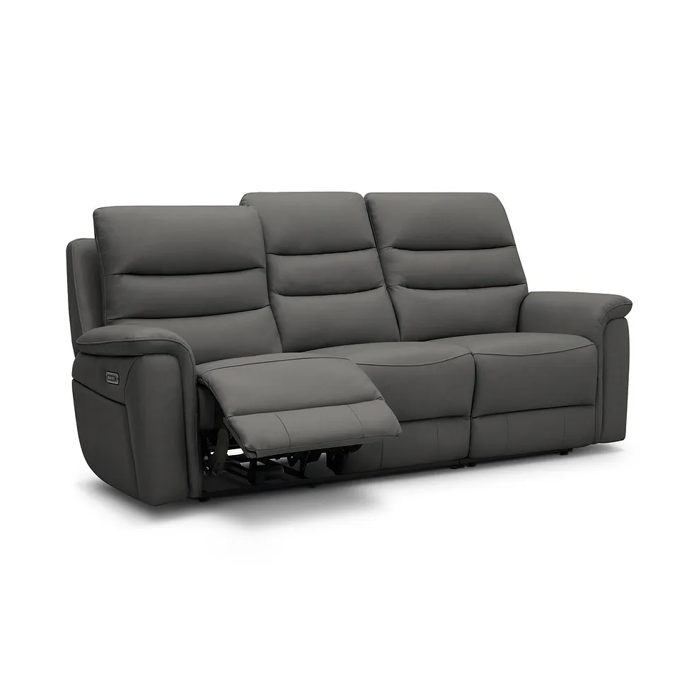 Experience next-level comfort with the Jarrod 3 seater power recliner, enhanced with power headrest and lumbar support for personalised relaxation. Combining functionality with modern design, this sofa features sleek lines, detailed stitching, and the unrivalled comfort of pocket-sprung seats. The recline function lets you adjust your position effortlessly, while the power headrest and lumbar support offer tailored ergonomic relief. Upholstered here in Elephant Grey leather, our Jarrod 3 seater recliner adapts beautifully to any home style.