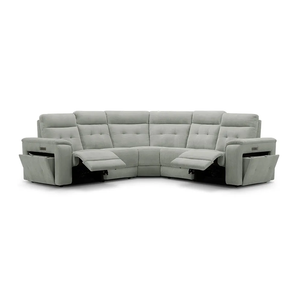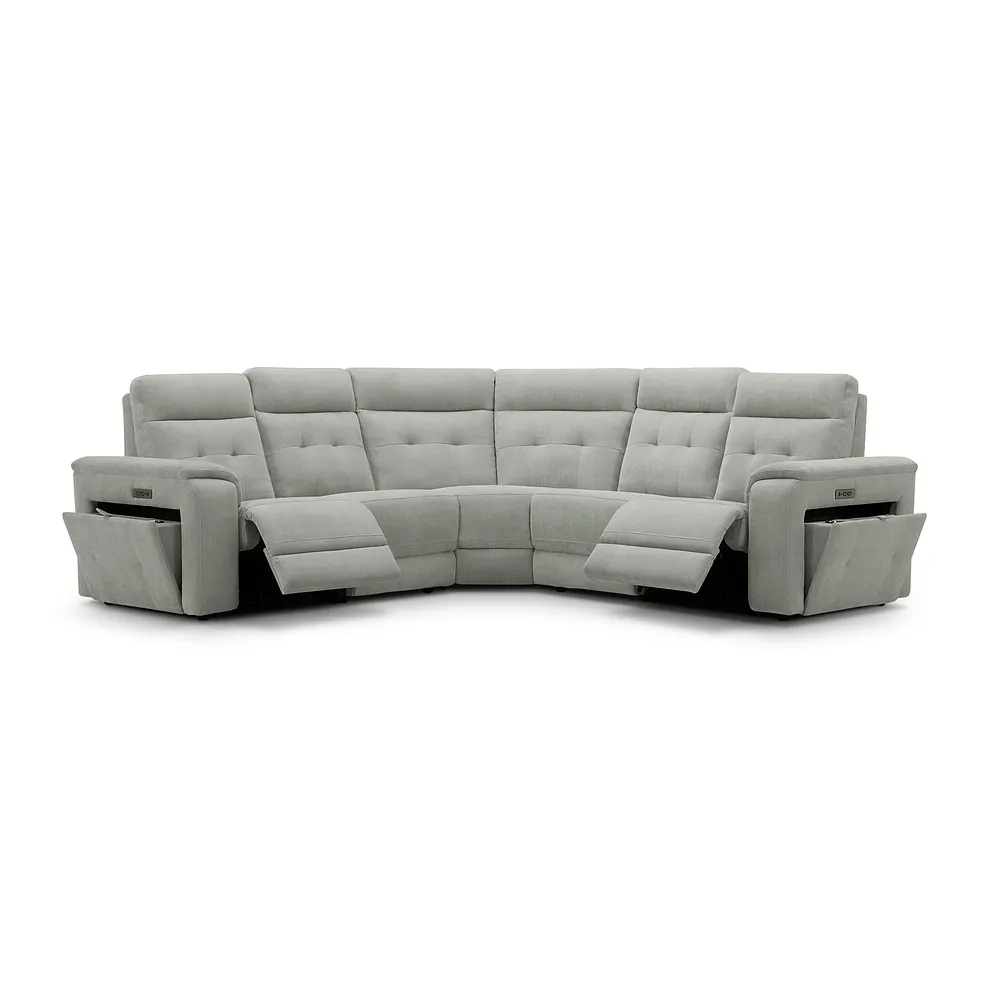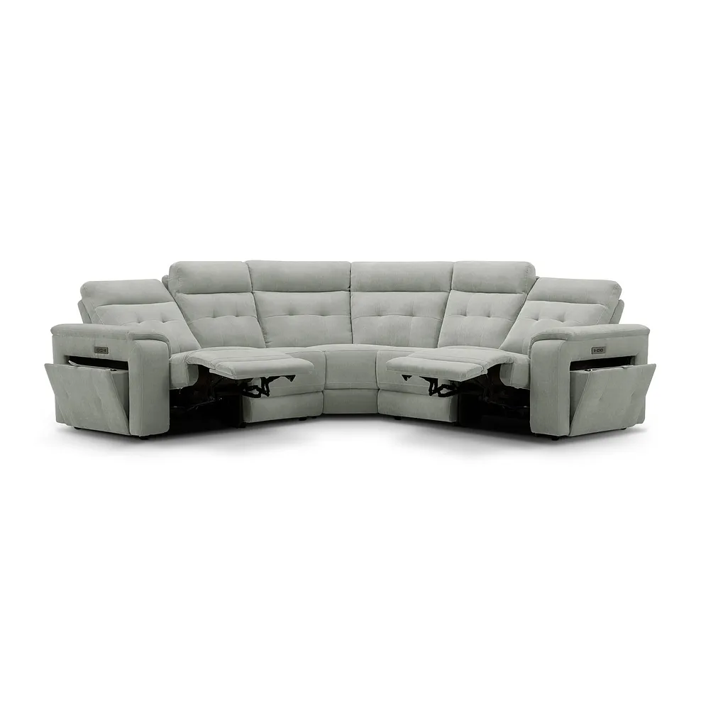 Introduce contemporary style to your home with our Juno 5-seater corner sofa in Amigo Sage fabric electric recliner with power headrest. Unwind in complete comfort and enjoy all the extras this multitasking sofa has to offer. From electric recliners to power headrests to clever arm storage with hidden cup holders – the Juno is packed full of exciting features every modern home needs. Whether you’re more of a put your feet up with a good box set person or a social butterfly who likes filling the house with friends and family – our Juno corner sofa will take care of every occasion.