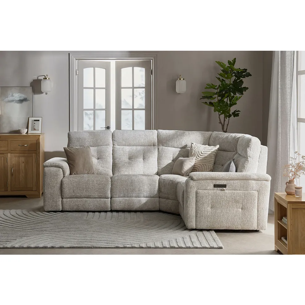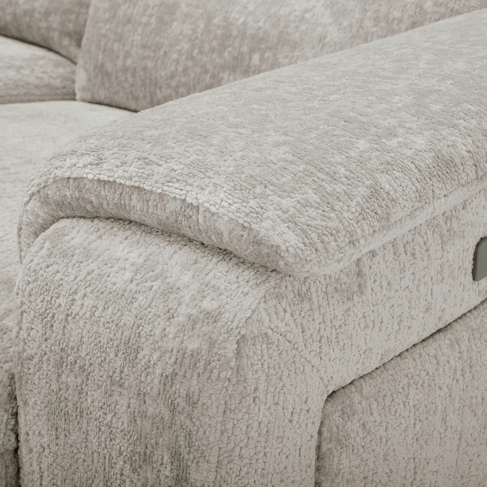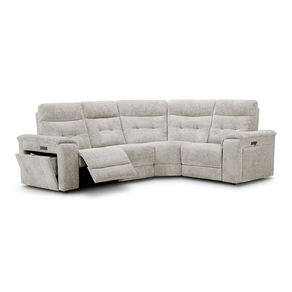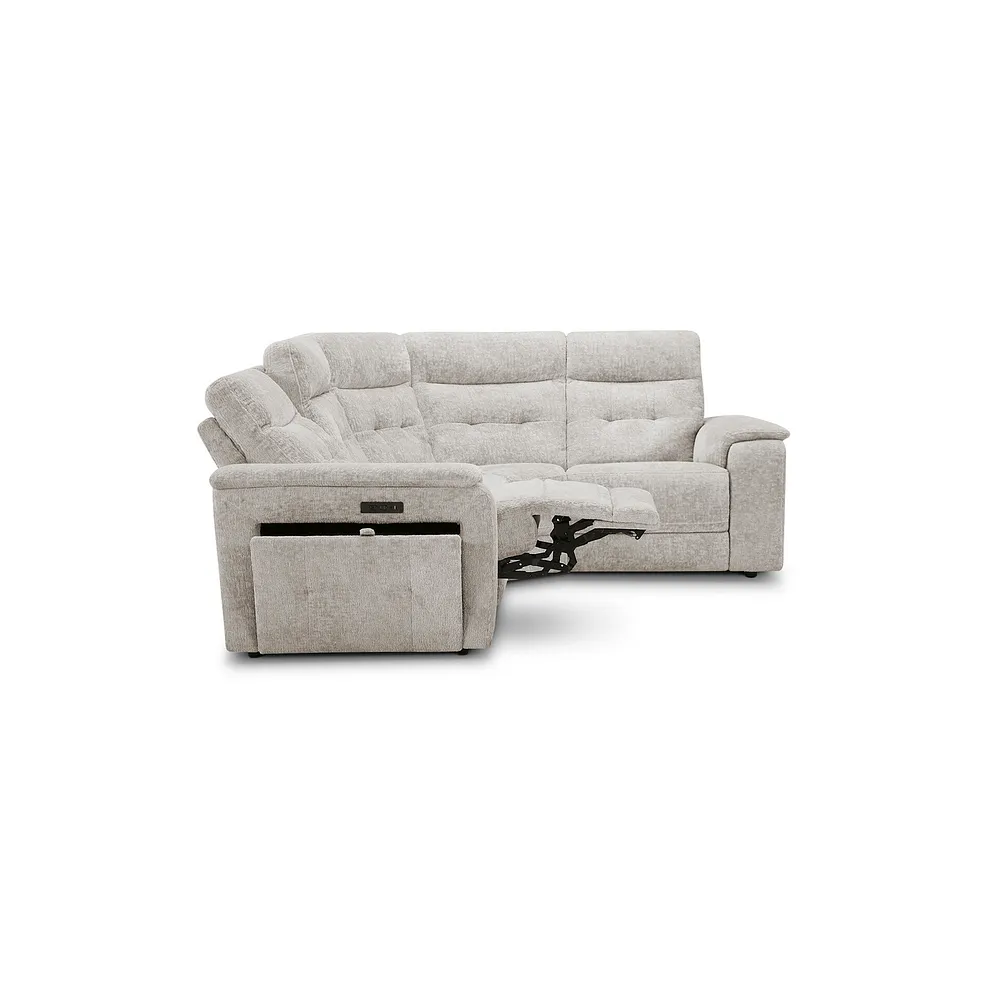 Elevate your living room game with our Juno left-hand facing, 4-seater corner sofa in Koto Turtle Dove fabric with power recliner and headrest. Sit back in style and enjoy the added benefit of arm storage with hidden cup holders so refreshments are always close at hand. Available in 3 luxurious fabrics, 9 colours, and several different size variations, there’s a Juno to suit every living room space. Whether you like to snuggle in front of the TV or invite your friends over for get-togethers, the Juno corner sofa will be the perfect addition to your home.