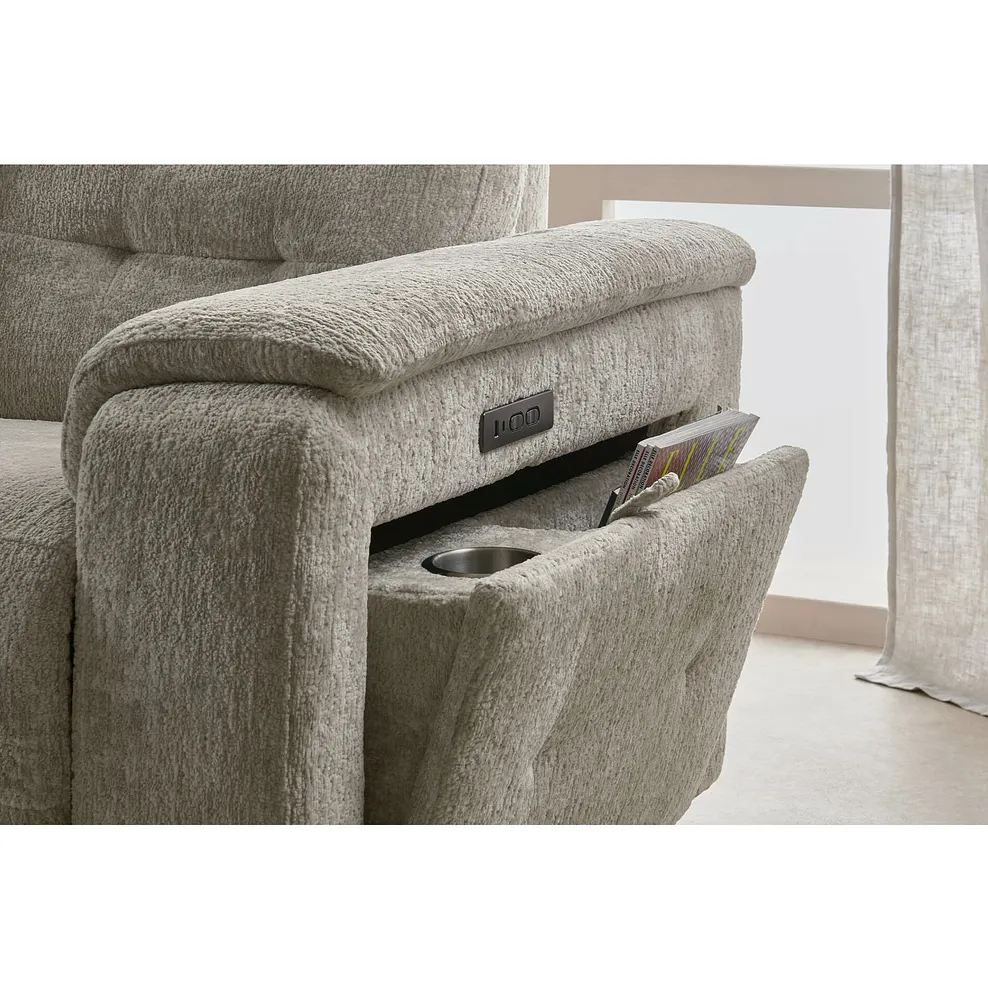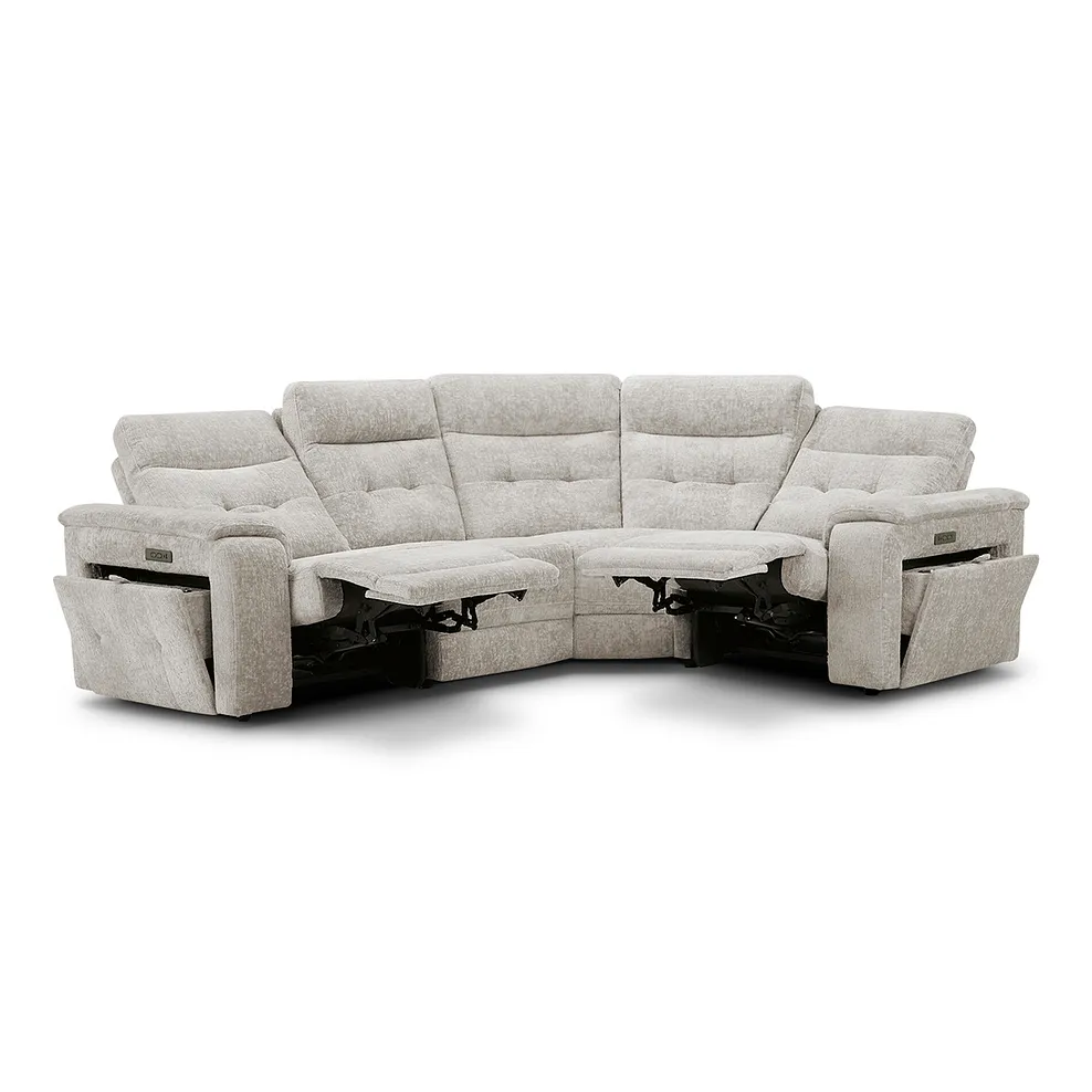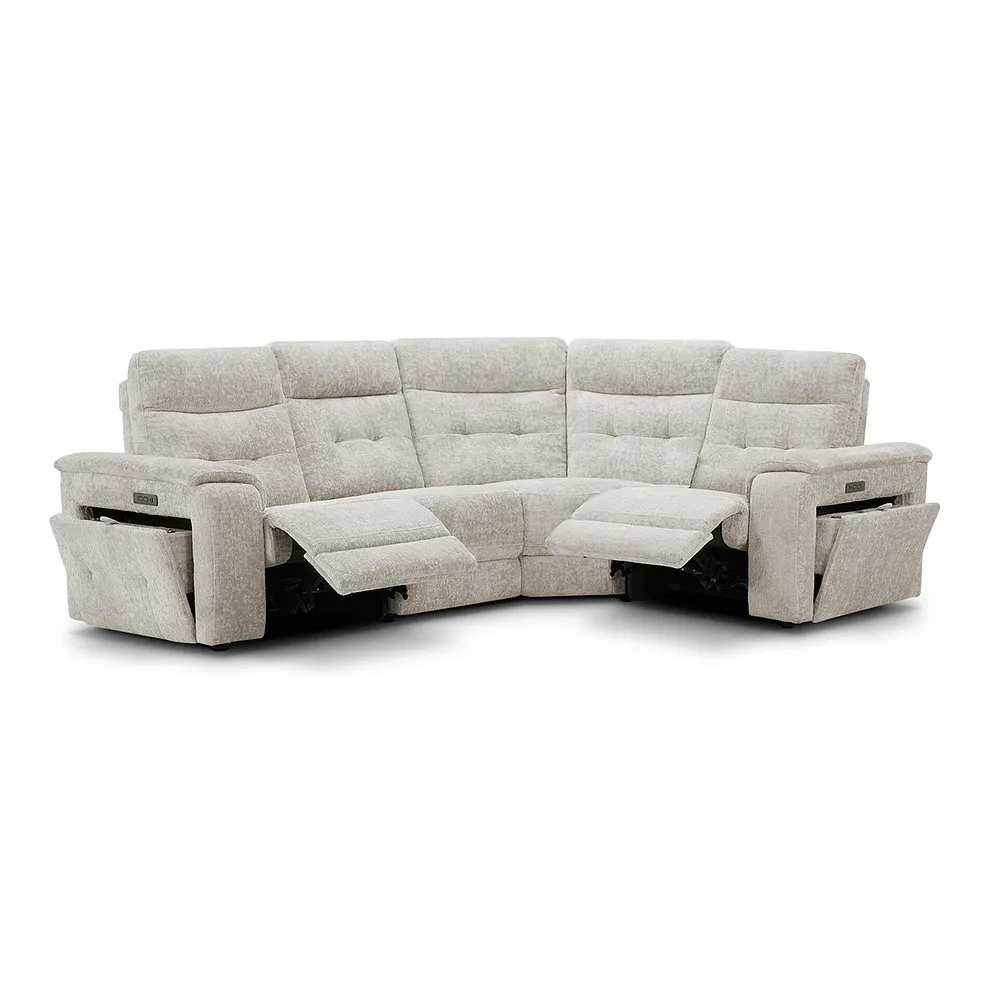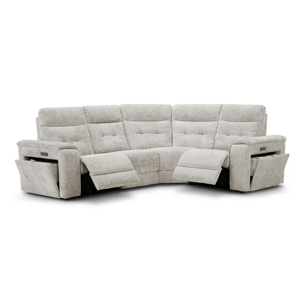 Elevate your living room game with our Juno left-hand facing, 4-seater corner sofa in Koto Turtle Dove fabric with power recliner and headrest. Sit back in style and enjoy the added benefit of arm storage with hidden cup holders so refreshments are always close at hand. Available in 3 luxurious fabrics, 9 colours, and several different size variations, there’s a Juno to suit every living room space. Whether you like to snuggle in front of the TV or invite your friends over for get-togethers, the Juno corner sofa will be the perfect addition to your home.