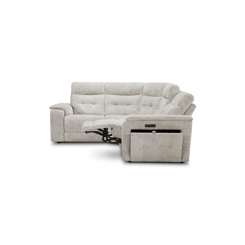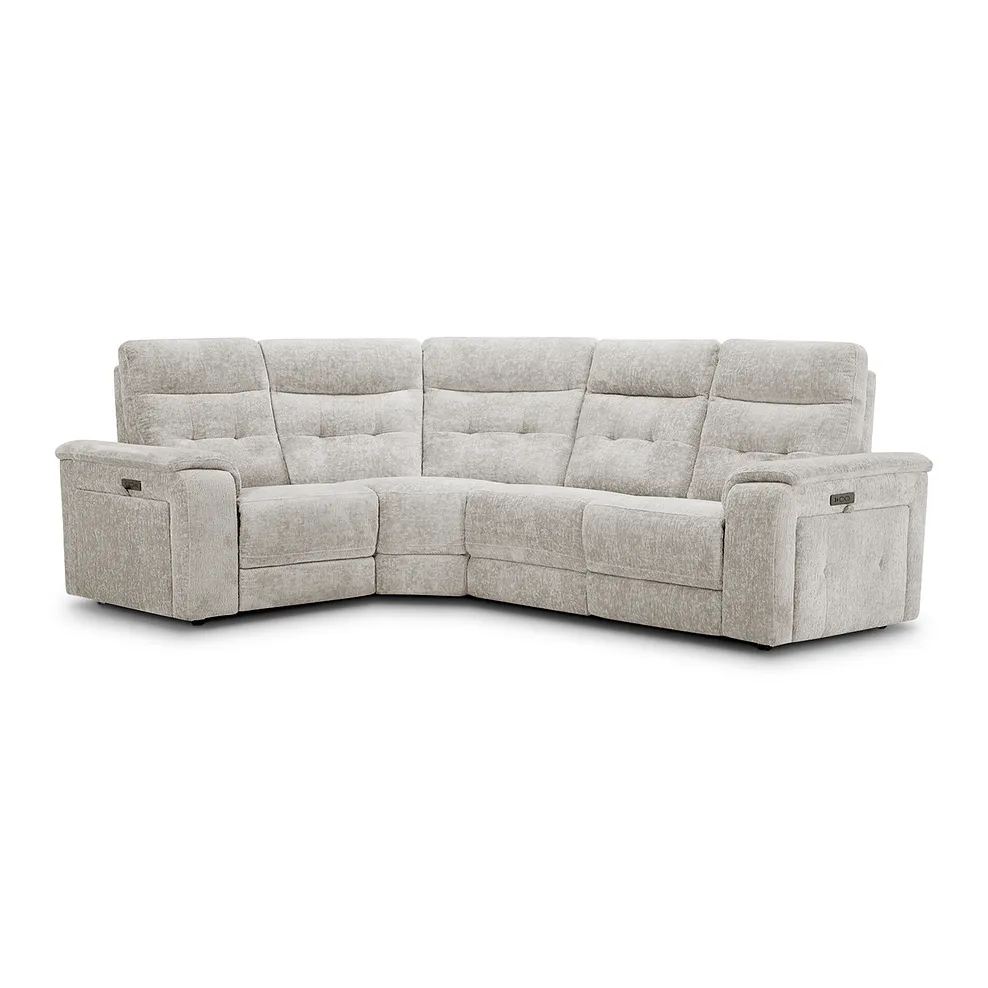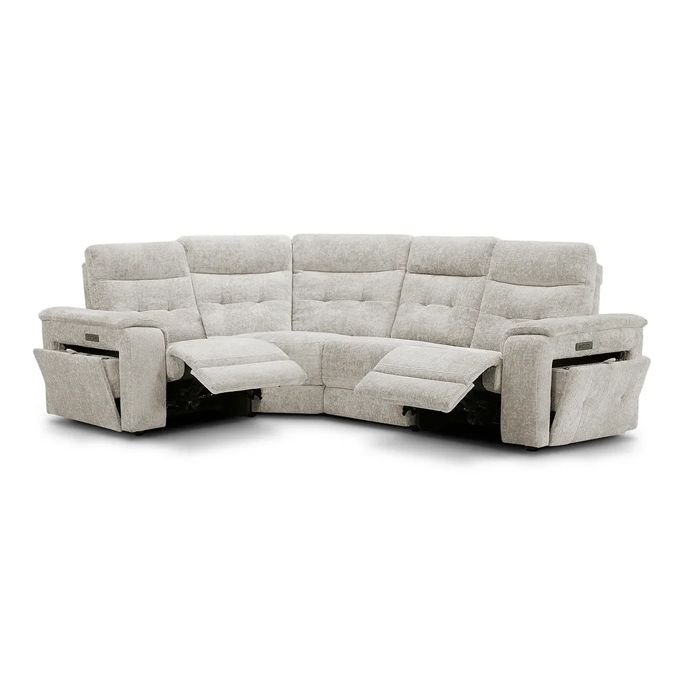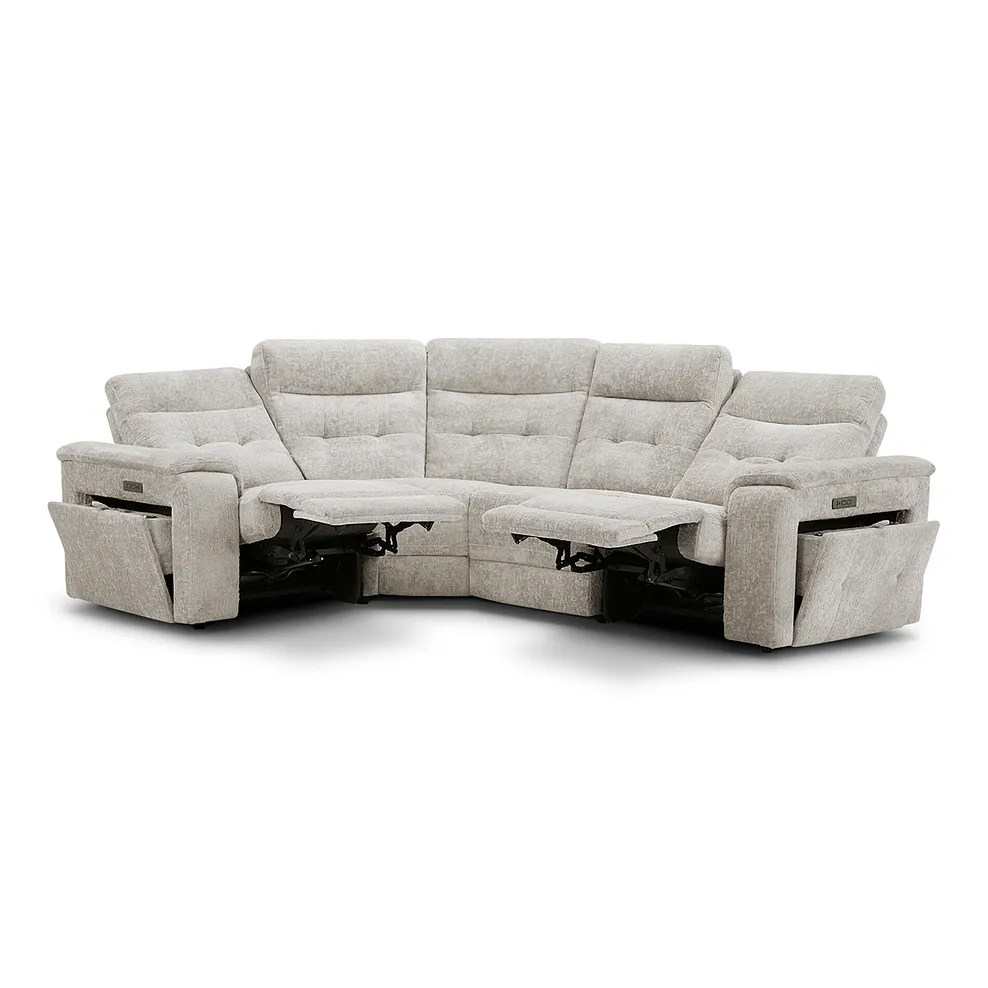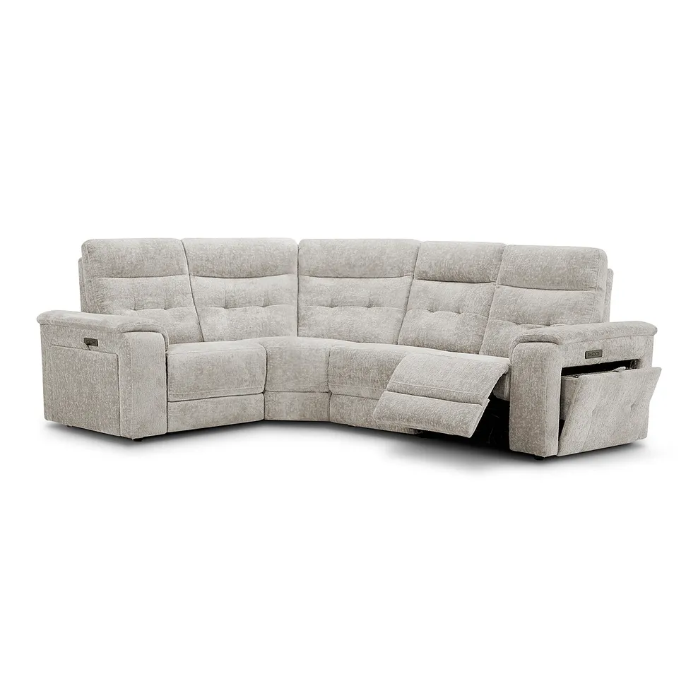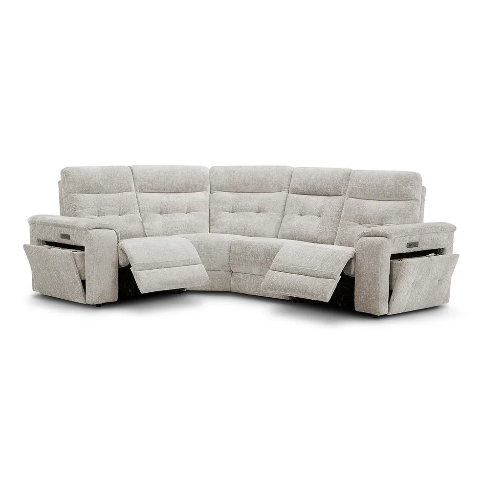JUNO Right Hand Corner Recliner with Power Headrests Koto Turtle Dove Fabric