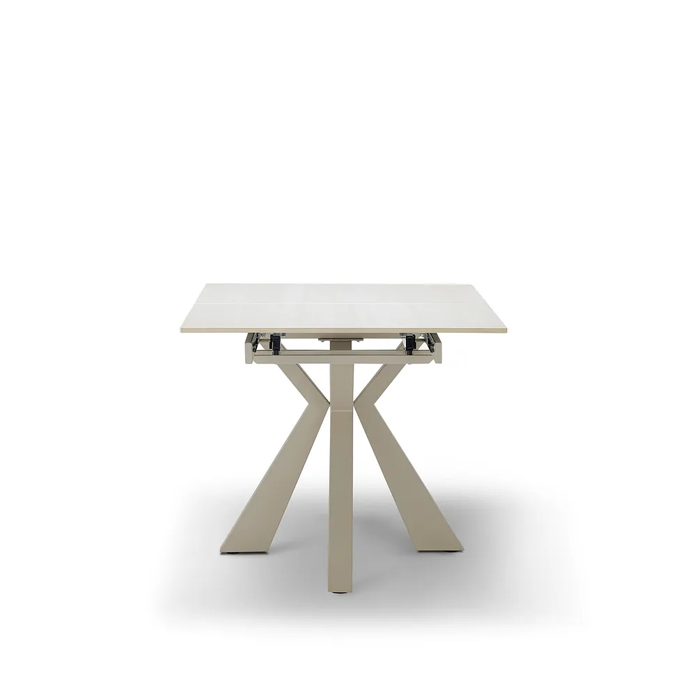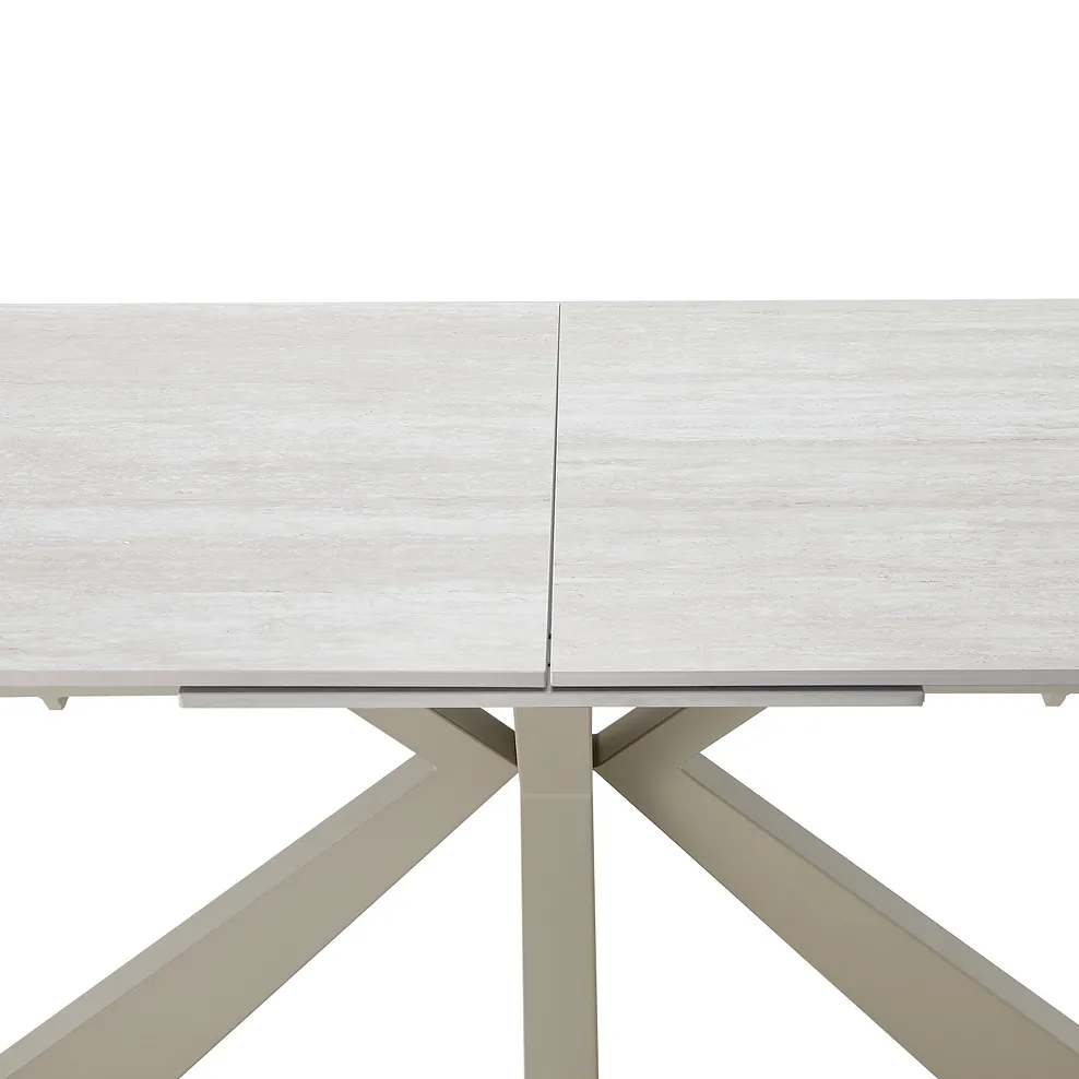 Make a statement with the Kobi Ceramic Extending Dining Table, where sculptural design meets smart functionality. Crafted with a glossy travertine-effect ceramic top and a cappuccino-toned, powder-coated metal base, this showstopping piece adds modern elegance to any dining space.