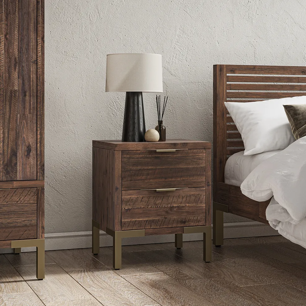 Simple lines, beautiful dark stained acacia and stylish detailing make the Madison modern bedside table an easy match to your bedroom.