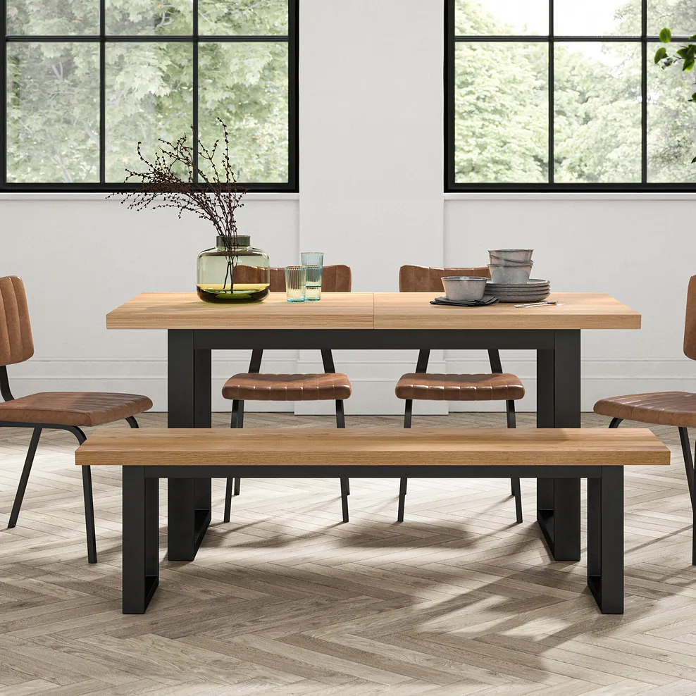 Contrasting charcoal sled-style legs complete the exclusive design, which gives an authentic and sophisticated look. For the extendable dining option, the table opens to reveal two hidden central butterfly leaves, which easily fold out to create handy extra space for guests.