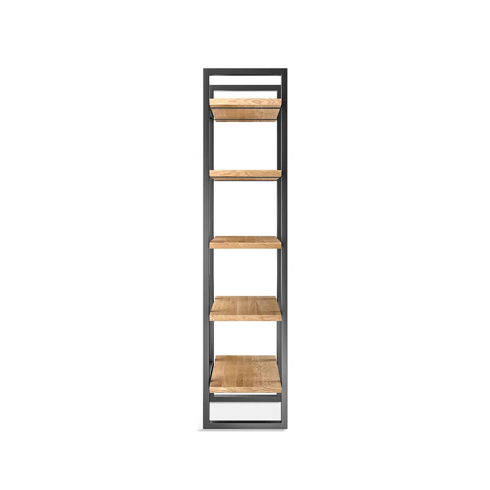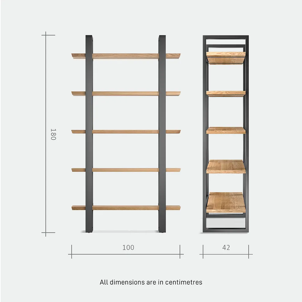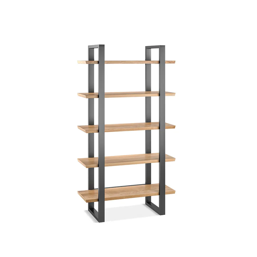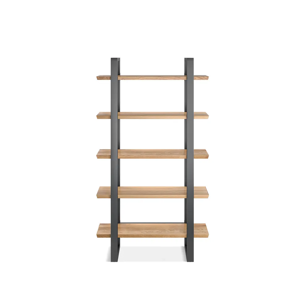 Complete with a smooth sophisticated look that reveals the wood€™s warm tones and natural grain, the exclusive design€™s five large shelves are made from solid oak with a low-sheen finish.