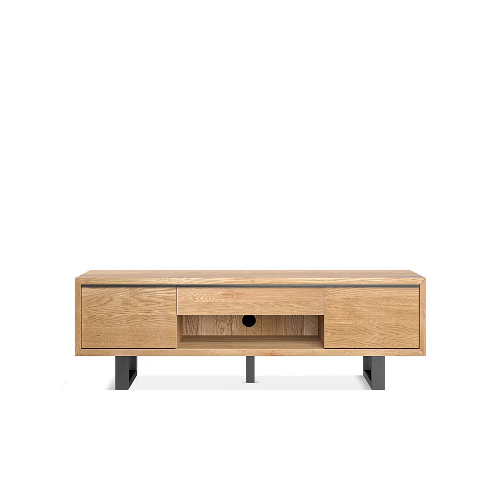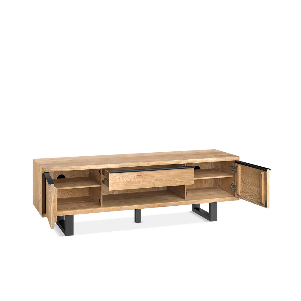 MAINE Extra Large TV Unit Natural Solid Oak & Metal