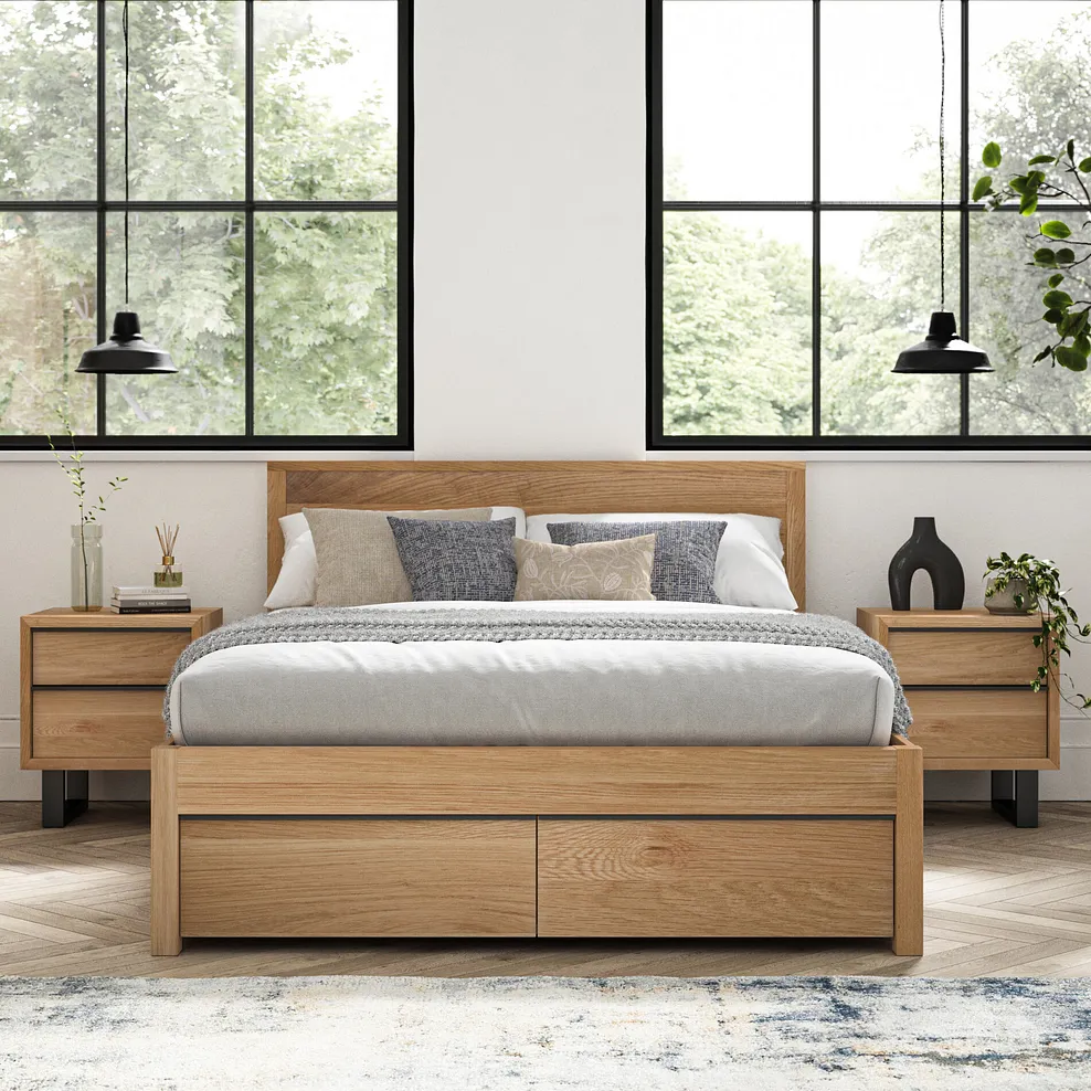 MAINE Storage King-size Bed Natural Solid Oak & Metal