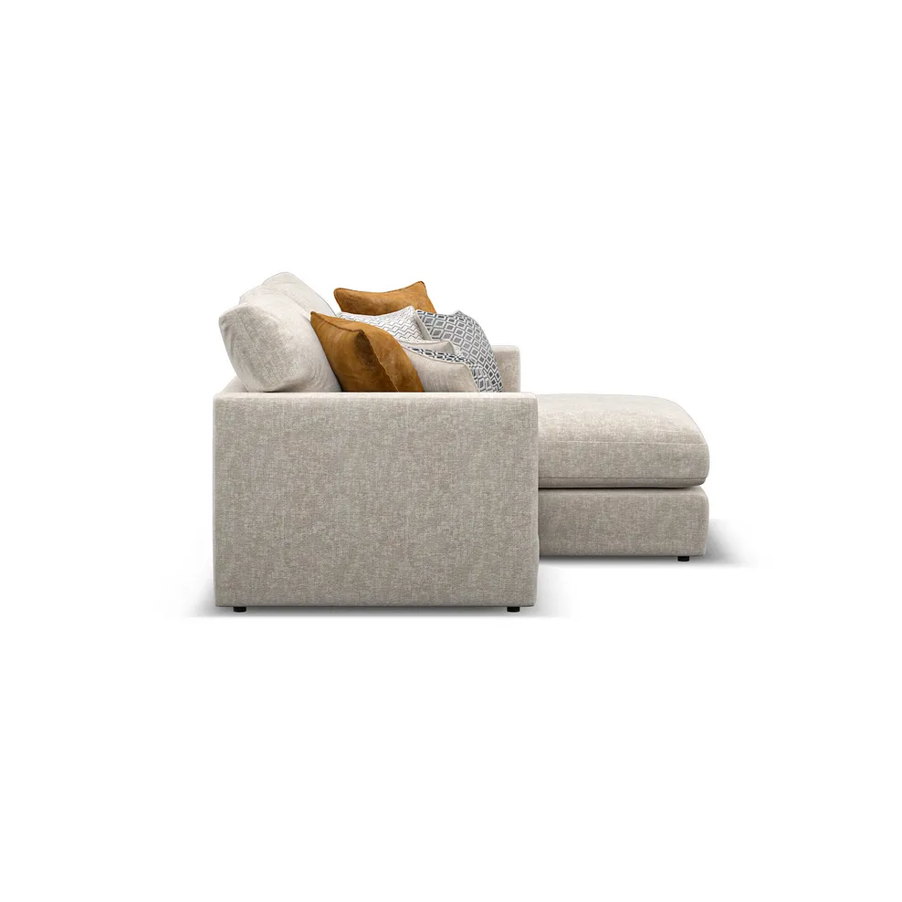 The chaise element offers a luxurious spot to stretch out, while the 2 seater section provides supportive foam-filled cushions, perfect for sinking into after a long day. Neat piping, gently curved edges, and soft upholstery create the signature Malvern look, which is understated yet inviting.
