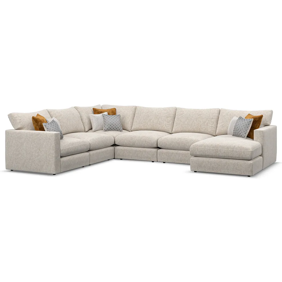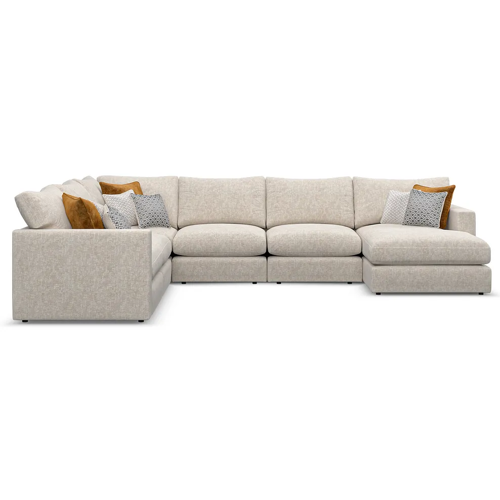MALVERN 6 Seater Right Hand Corner Sofa with Chaise Beige Fabric