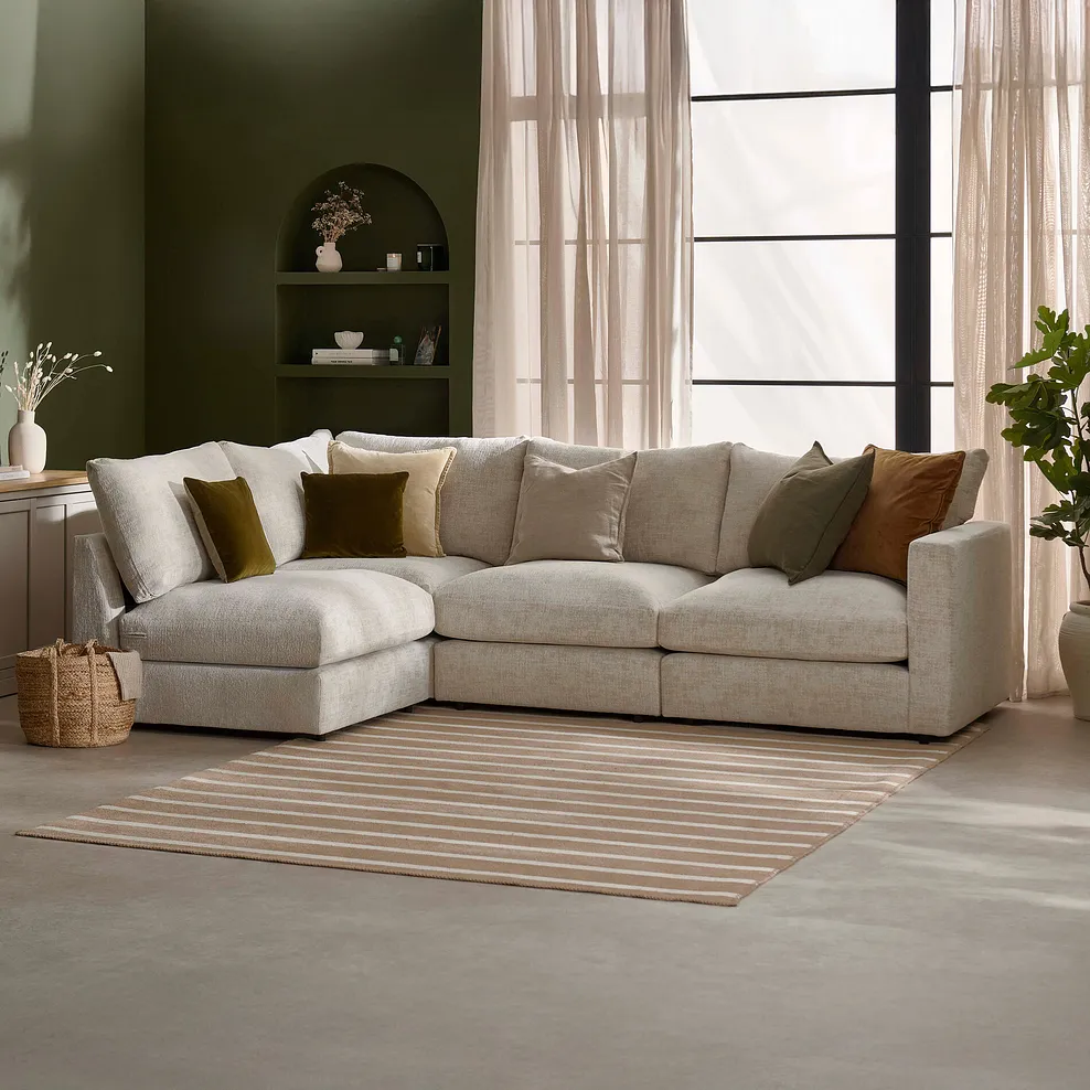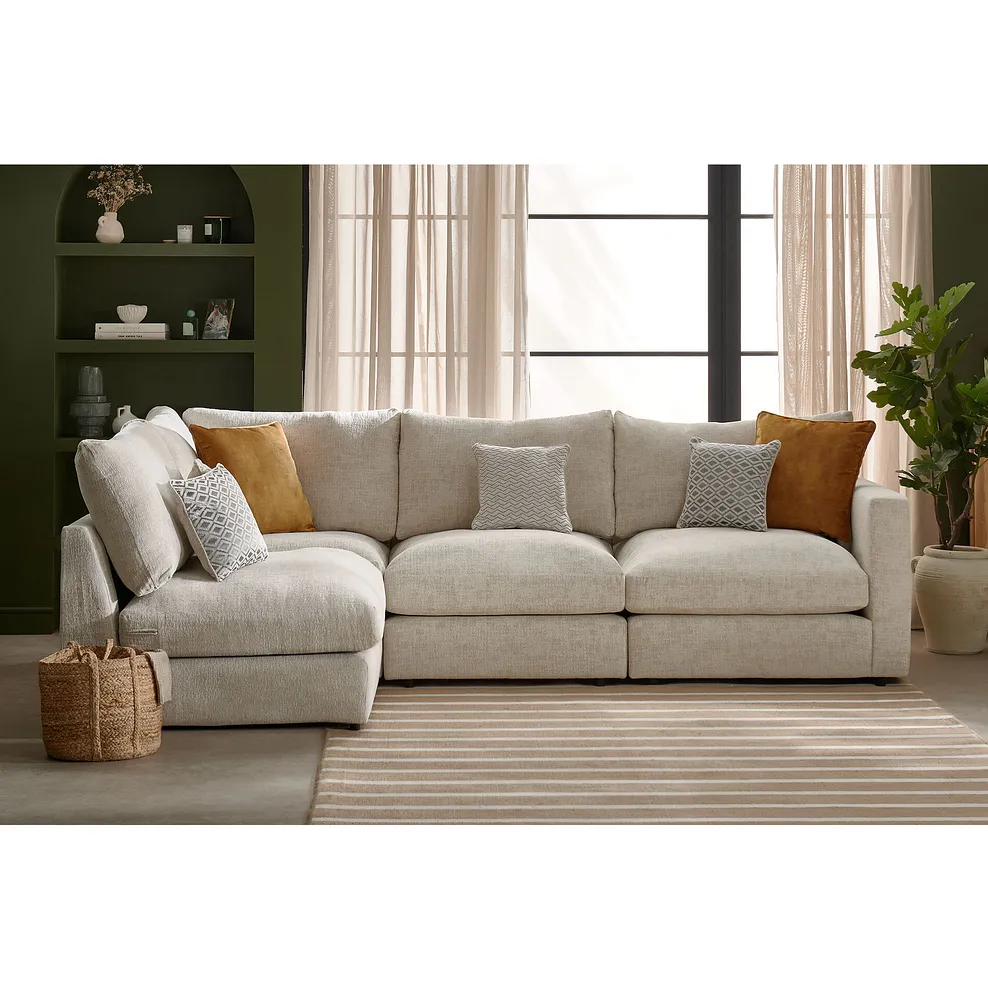MALVERN Modular 4 Seat Right Hand Corner Sofa Beige Fabric