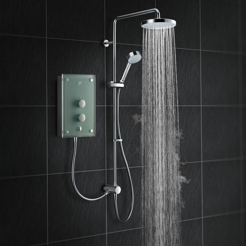 This electric shower is compatible with combi boilers and high-pressure systems.