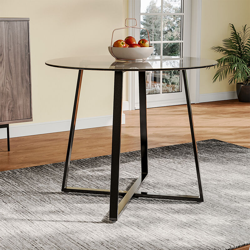 a distinctive crossed design and has a top-notch tempered glass tabletop which