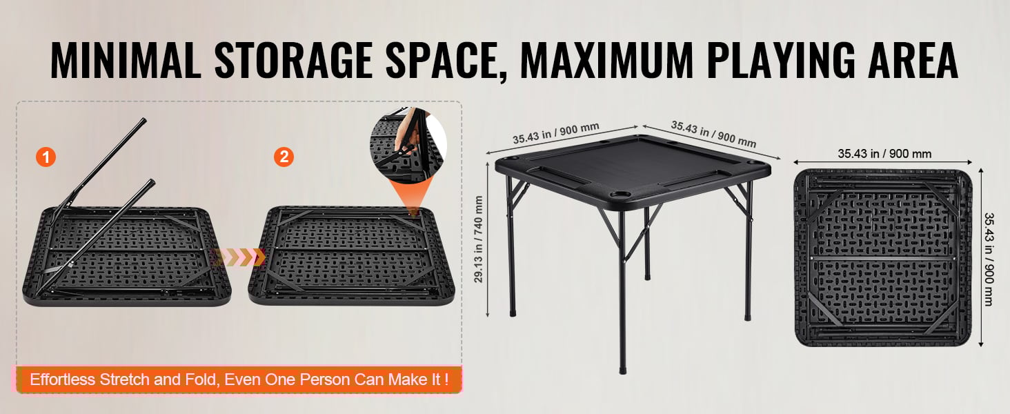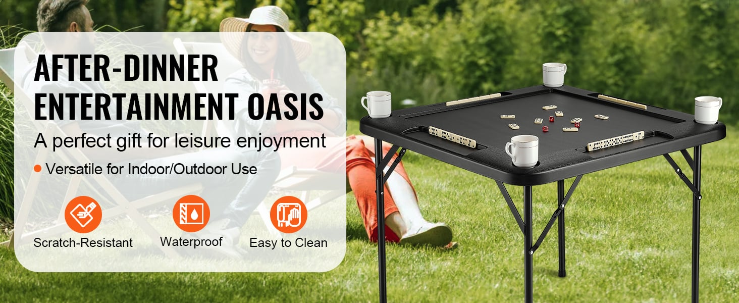 Folding down to a compact size, VEVOR folding domino table efficiently addresses your storage needs without occupying much space. Simply fold it up and store it by the staircase, in a wall corner, or in your trunk, ensuring effortless portability whenever you need it.