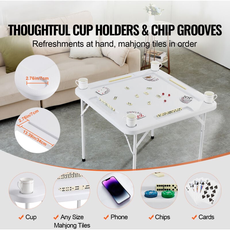 Elevate your gatherings with Mophorn folding mahjong table, perfect for enjoying leisure time with family and friends. With its convenient cup holders, you can easily keep your drink within reach. Additionally, the chip trays enable you to neatly organize and readily access your phone, chips, and cards.