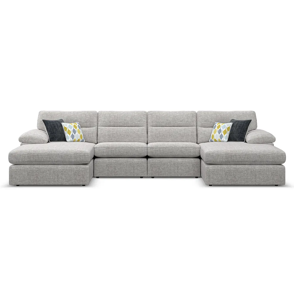 MORGAN 4 Seat Double Chaise End Sofa Santos Silver Fabric