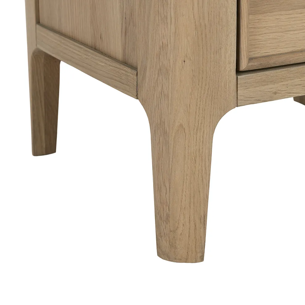 Elevate your bedroom with our Newton bedside table, made from solid oak with a clear matt finish and designed with an elegant silhouette.
