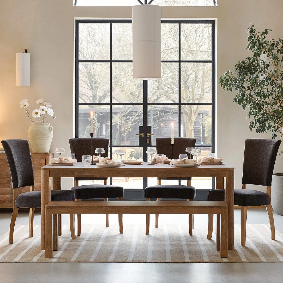 Built for everyday use, Noah blends timeless craftsmanship with contemporary appeal. The sturdy construction ensures durability, while the natural finish complements a variety of interiors, from modern to rustic settings. Whether placed in an open-plan kitchen or a dedicated dining room, this beautifully crafted set offers both comfort and style, making every mealtime feel special.