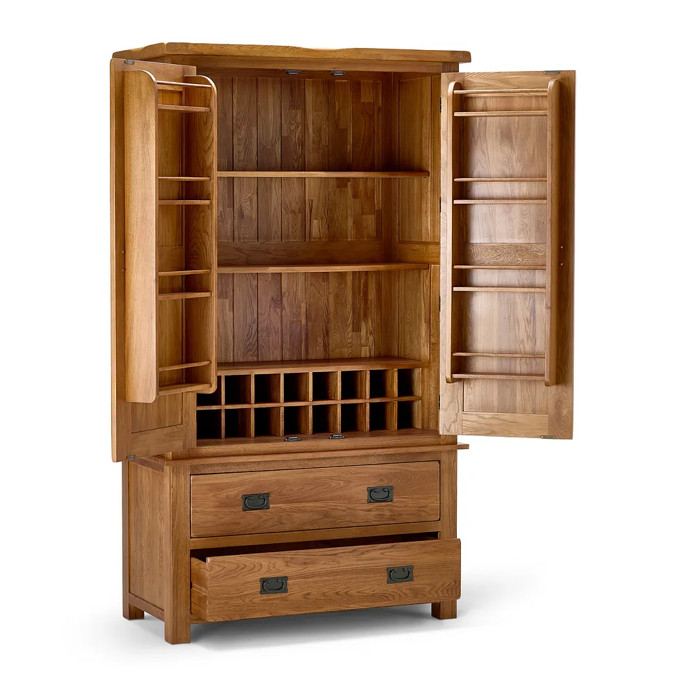 Bring timeless charm and practical organisation into your home with our Original Rustic Large Larder. Thoughtfully designed with a traditional feel, it features softly rounded corners and chamfered edges that highlight its classic craftsmanship. Elegant brass finish handles add a touch of understated style, making it as beautiful as it is functional.