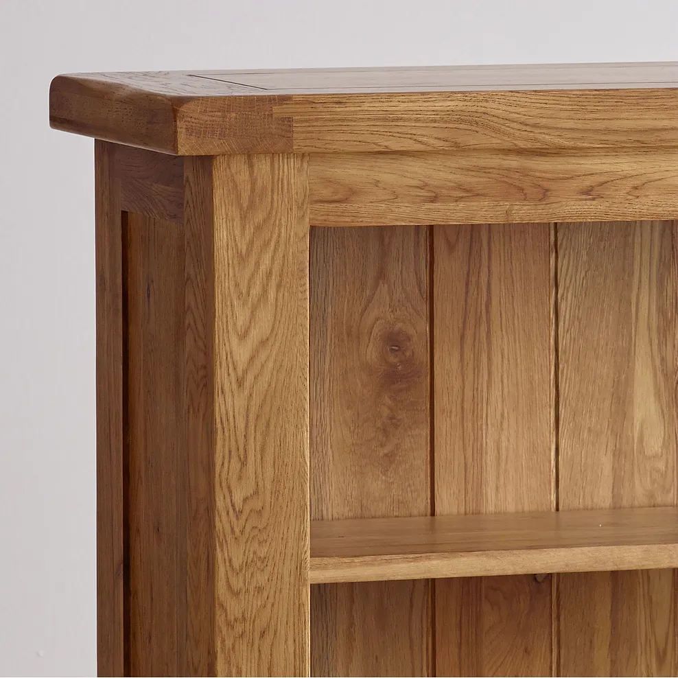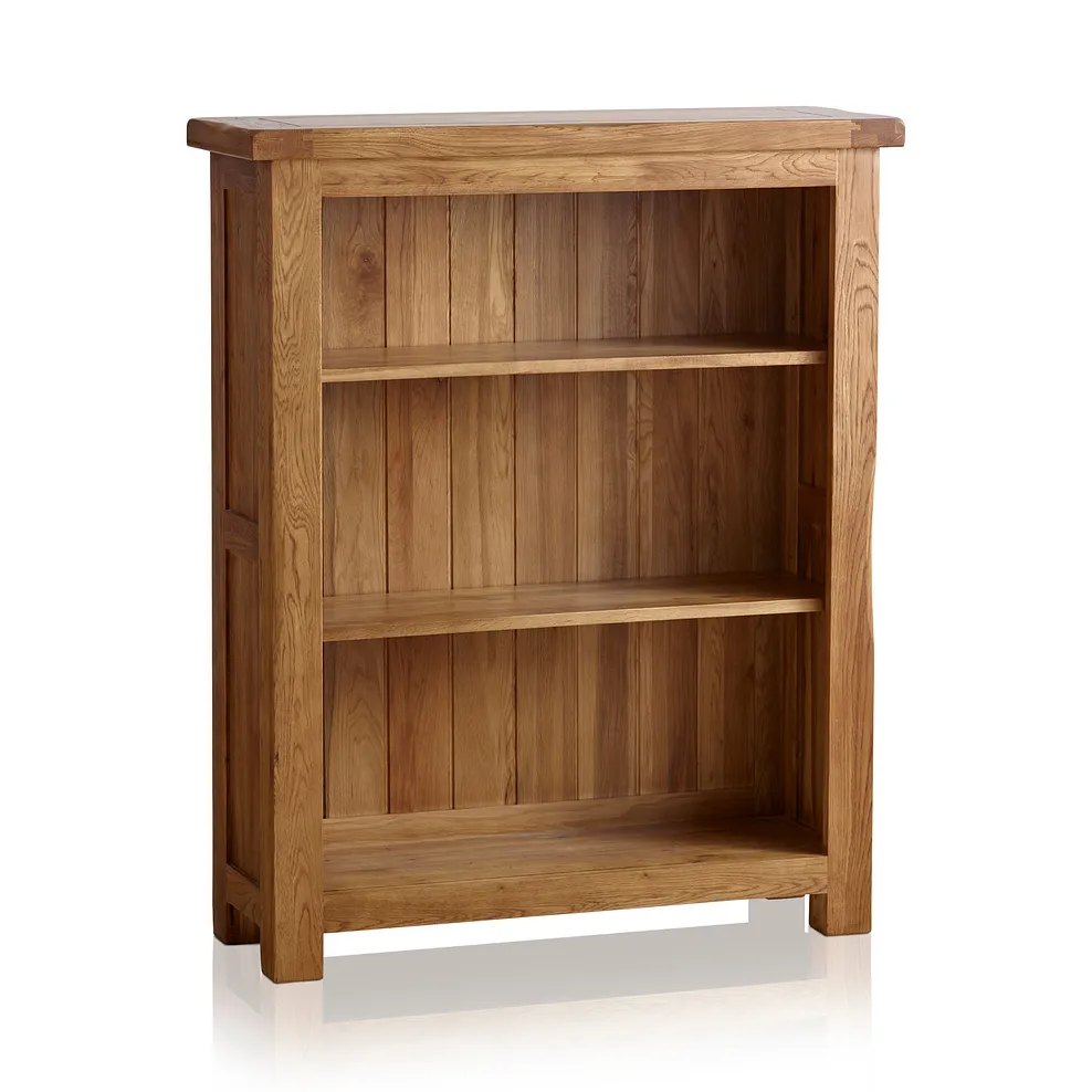 The Original Rustic Solid Oak Small Bookcase has a traditional, farmhouse appearance which will grace modern and more classically decorated homes alike. Made from beautiful solid oak, it features a slightly darker colouring to our other oak ranges, which is achieved by applying lightly stained wax to the timbers. This antiqued appearance is complemented by the rustic design – characterised by softly rounded corners, chamfered edges and eye-catching inlaid grooves. The bookcase offers three small shelves to display your prized book collection, DVDs, CDs or games. We never skimp on materials and we never use chipboard, veneers or MDF in any of our products – even the back of this small bookcase is high quality solid oak.