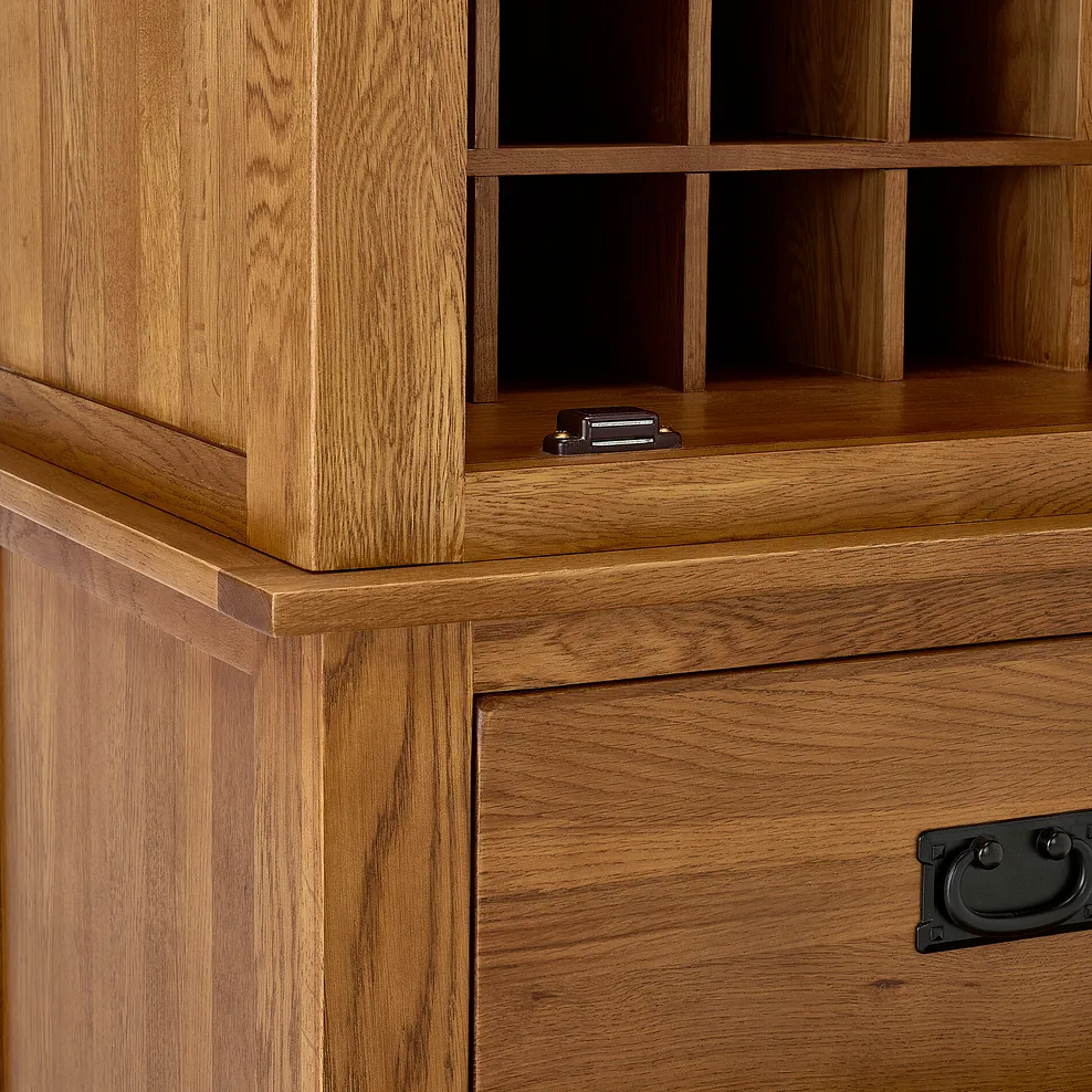 Designed with a traditional touch, this compact Original Rustic Small Larder makes the most of your kitchen or dining space while keeping everything beautifully organised. Crafted with rounded corners and chamfered edges, the larder has a warm, inviting look that feels at home in both classic and country-style interiors. The brass finish handles add a subtle touch of elegance, perfectly complementing the rustic character of the piece.