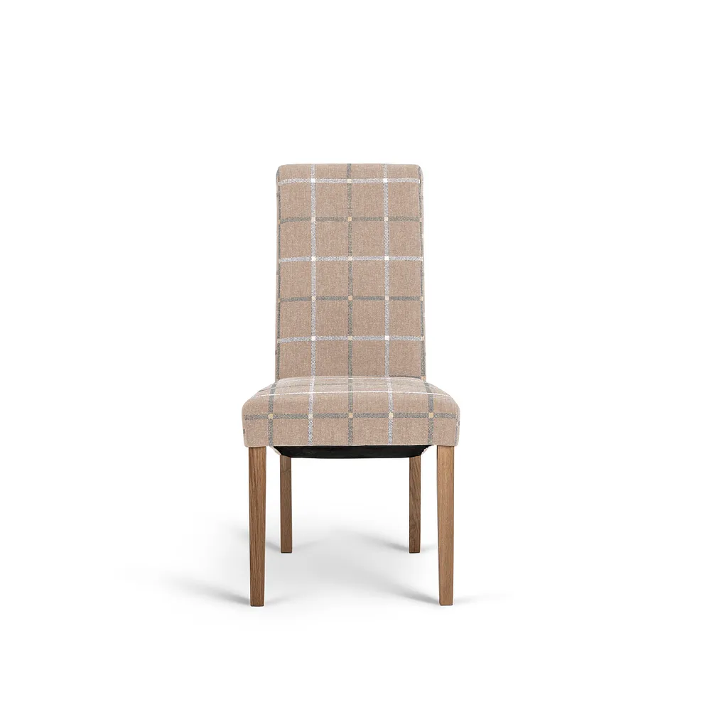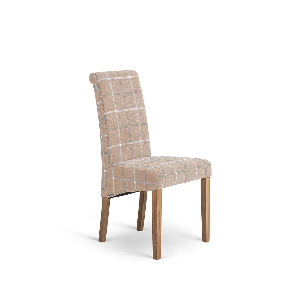 Make mealtimes flexible with our Otto 6-8-seater extendable dining table with 6 Scroll Back chairs in checked beige fabric. These timeless chairs add a classic touch to the contemporary smoked oak table top to create a versatile look that brings comfort to home dining.