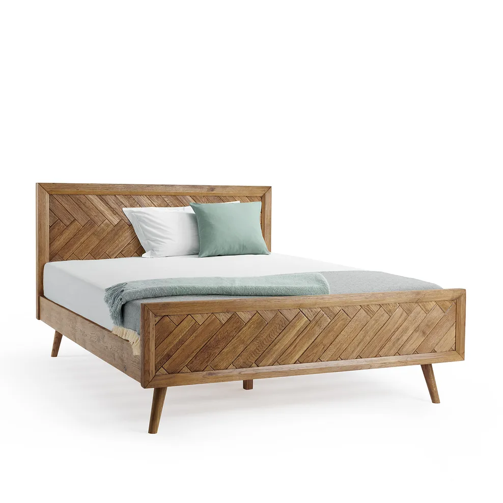 Our beds are always 100% solid hardwood, and the Parquet double bed is no exception. Solid oak, with a brushed and glazed finish, it features a pattern based on classic wood block floors. What can’t be seen is also oak €“ the supporting slats. Mid-century modern slim oak legs finish off the design. We make furniture, with tried and tested carpentry, to last. And our mattresses are made with the same care, too.