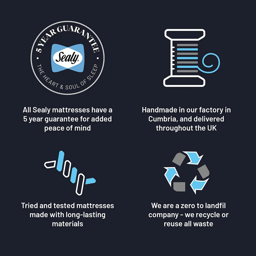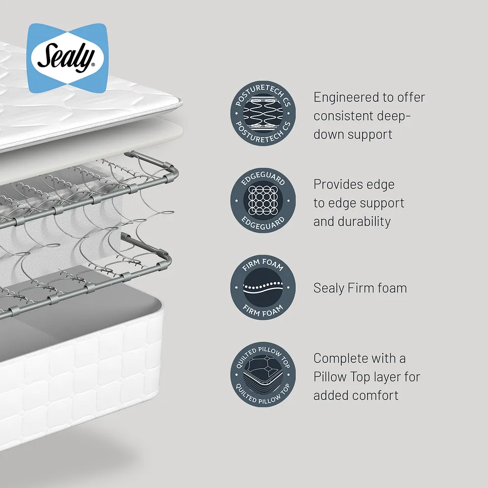 Underneath these sumptuous layers, Sealy PostureTech springs provide edge-to-edge support. This means that no matter how you sleep €“ on your front, back or side €“ your body will feel well-rested each morning.