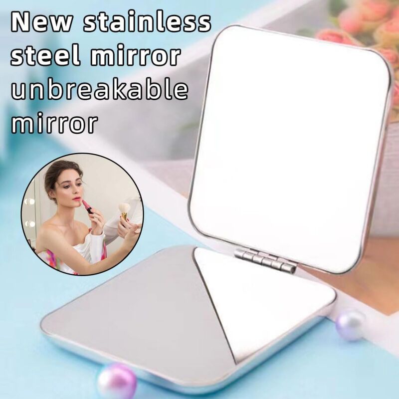 High-quality material‘Our small portable mirror is made of selected 304 stainless steel material, which has excellent durability, anti-fall performance, and effectively prevents rust and corrosion. The mirror surface is finely polished and covered with a double-layer protective film. After removing the protective film, you will see your face clearly. Every detail gives you an excellent user experience.