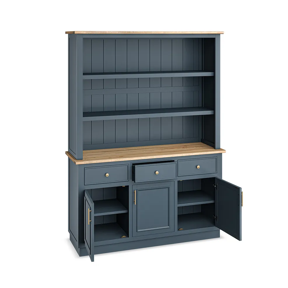 Make a striking storage statement with our Richmond ink blue and oak large dresser. The painted acacia unit has an oak top with a smoked finish that adds a pleasing contrast that radiates modern farmhouse style.