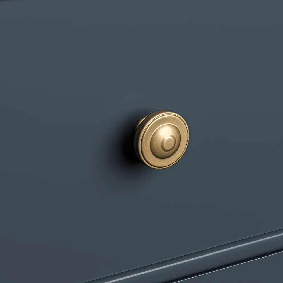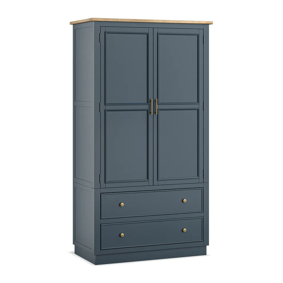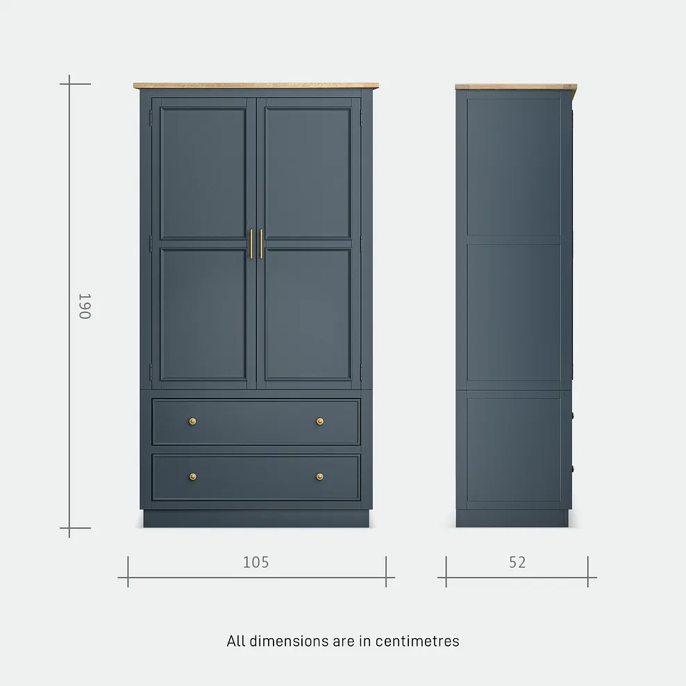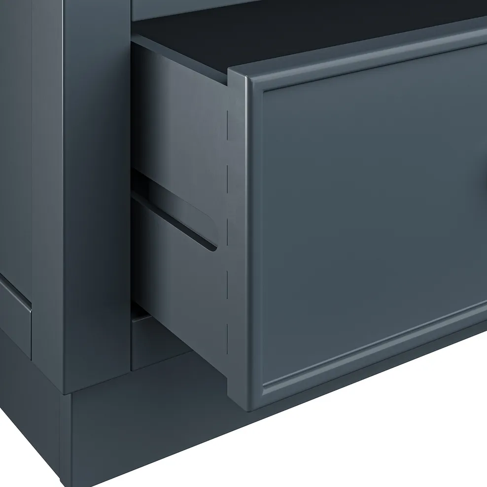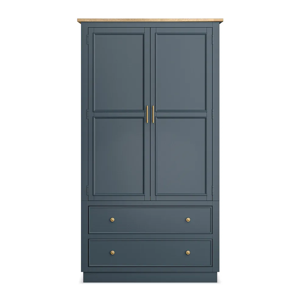 Finished in a rich, deep blue paint, the Richmond Large Larder is complemented by stunning solid oak internal detailing, making every opening feel like a special moment. The brass-coloured handles add a touch of timeless sophistication, while the two generous deep drawers provide plenty of space for larger items. A smoked finish oak top complements the blue tones beautifully to bring farmhouse-inspired design to your home.