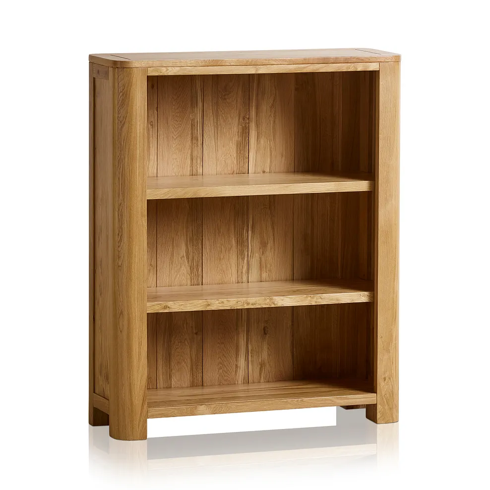 Perfect for adding extra storage and display space to your living room or home office, our Romsey small bookcase is perfect in a modern family home. It boasts three sturdy storage shelves made from the same solid oak as the rest of the piece, so you know your books and keepsakes will be safely supported for years to come. The Romsey bookcase has a simple silhouette, signature to the range. The rounded corners and subtle cut detailing on the top complete the look. All of our Romsey pieces are made from 100% solid oak in our natural finish, which adds cheerful warm tones to the wood and brings out the natural grain patterns of the timber. Browse all our Romsey pieces today to discover looks for every room in your home!