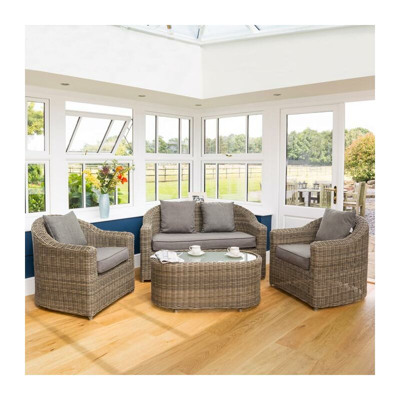 The Rowlinson Bunbury Sofa Set – Natural Weave is a contemporary rattan set that will provide a comfortable and attractive seating area in any garden. Made up of a sofa and two chairs, complete with plush cushions, as well as a frosted glass table, the Bunbury Sofa Set will be an excellent addition to your outdoor seating space. The Bunbury will look equally stylish in your conservatory.