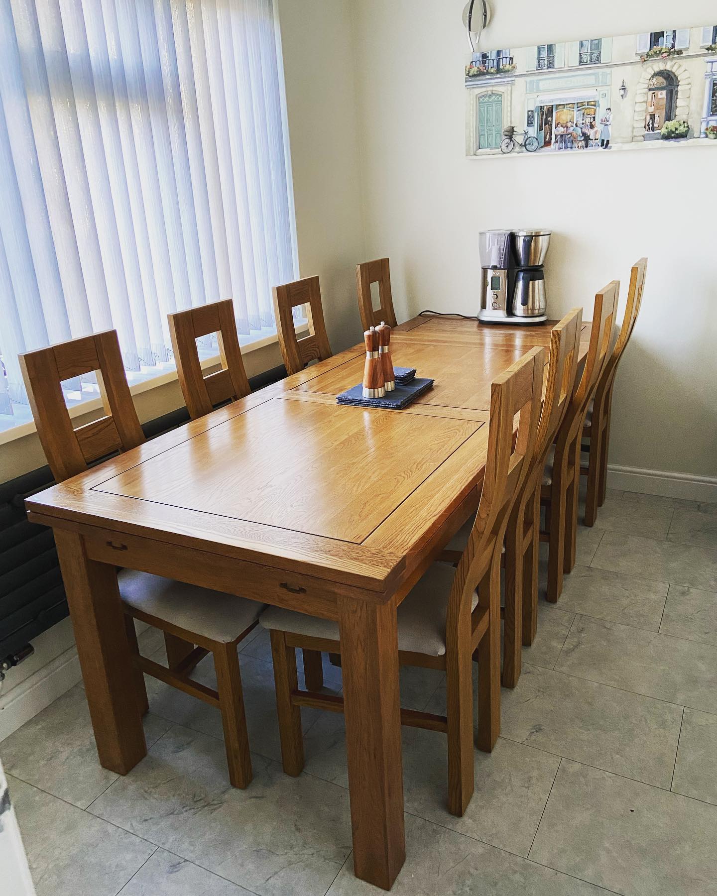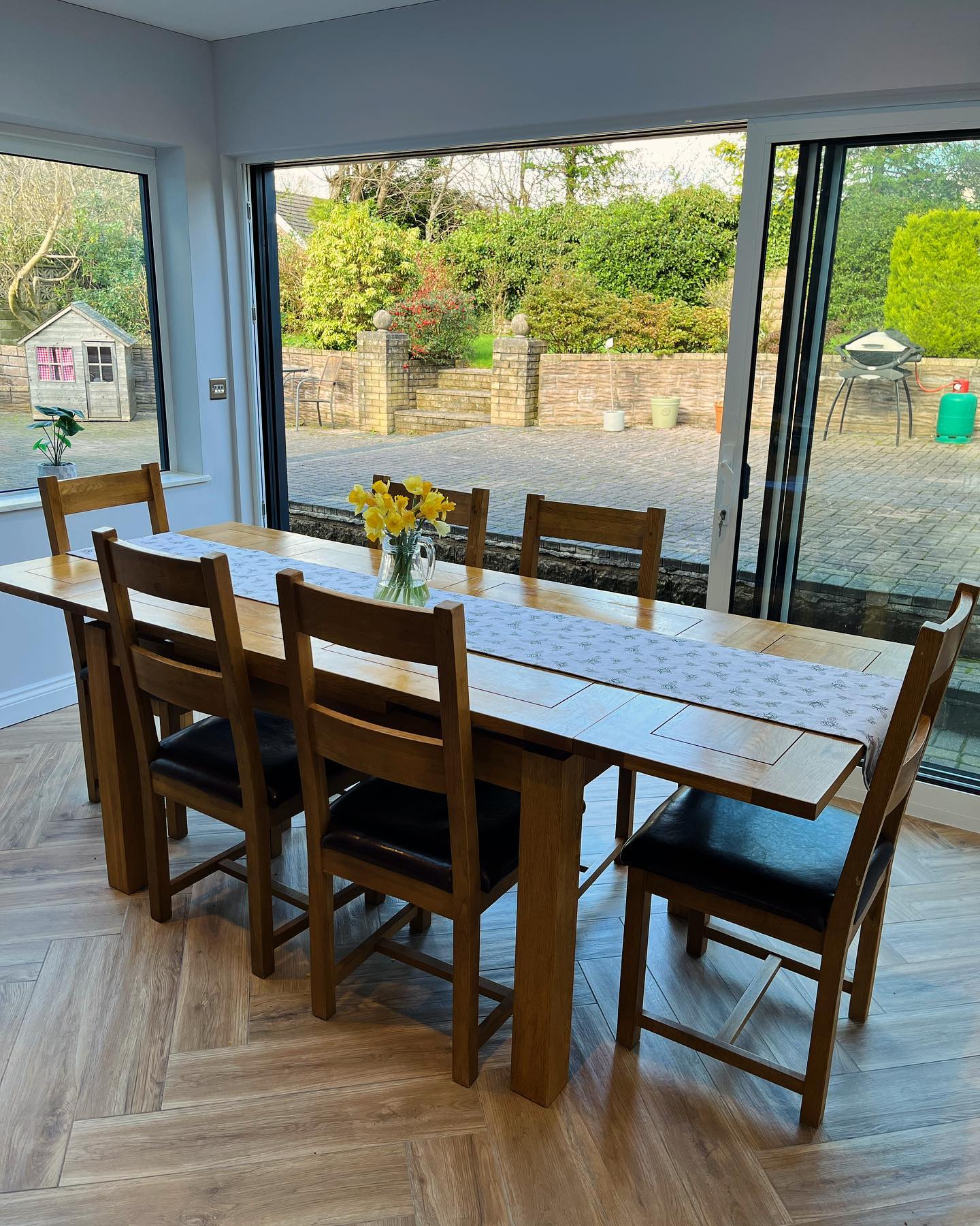 The SherwoodSolid Oak 6ft x 3ft Extending Dining Table is the ideal solution for those who regularly entertain guests or for those that have a larger immediate family. This beautiful table comes complete with easy-to-operate extensions at both ends that can add more than 3 feet to the length of the table – which equates to an additional 2 – 4 guests that can be seated. This simple and effective mechanism epitomises the quality and versatility of our extending dining tables, and we insist on using only the finest materials in our products.Finished with a subtly stained wax to achieve the rustic look, it is inspired by a simplistic design that allows the quality of the oak to take centre stage. Simply continue to treat with a natural furniture wax to maintain and protect the timbers.