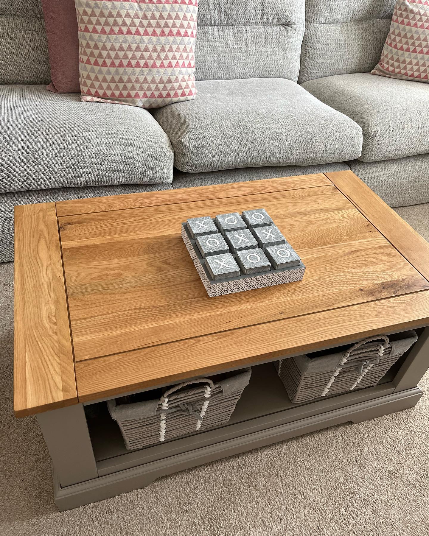 A sturdy, low table for the living room, a good spot for friends to group for coffee, and for family to gather for tea, perhaps, when there€™s something just too good on the TV. The table has a lower shelf for collecting remotes and magazines, keeping things neat. Made from solid hardwood, and topped with natural oak, the sturdy construction and bracket feet and are very practical for a living room table.