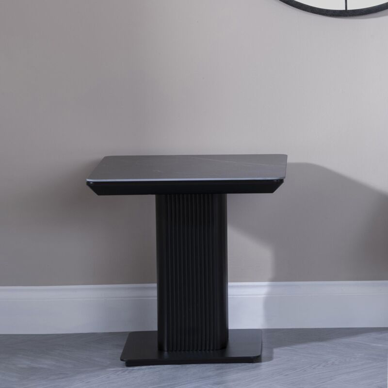 Experience elegance and luxury with our Rivoli Black Ceramic Fluted Lamp Table. Crafted with sophistication and exclusive design, this table is perfect for adding a touch of art and style to any room. Its fluted ceramic base adds texture and depth, while the sleek black finish exudes a sense of tastefulness. Elevate your home decor with this premium piece.