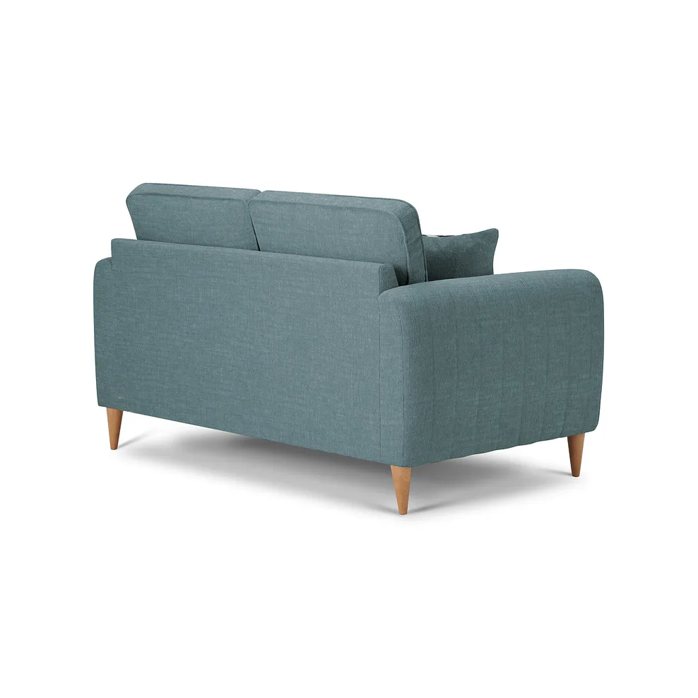 Ideal for smaller living spaces, the modern yet timeless Thornley two-seater sofa is upholstered in a chic soft textured fabric that provides long-lasting comfort. Elevated on solid oak tapered legs, the exclusive design features contemporary slim curved arms with pleated details and reversible back cushions so you can instantly refresh the Scandi-style sofa for last-minute guests. Geometric-patterned complementary scatters in a textured velvet fabric add a modern touch and visual interest.