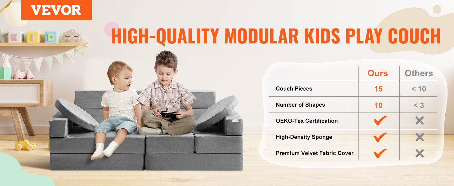This kids couch allows kids to explore and assemble different geometric shapes, unleashing their imagination. To enhance using experience, we’ve not only chosen high-quality materials but also increased the number of components and shapes, making playtime more enjoyable for kids.