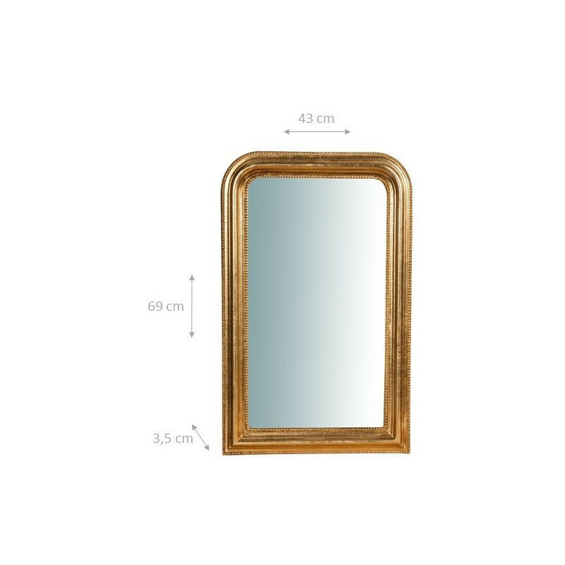W43xDP3,5xH69 cm sized wood made gold finish wall-mounted mirror Carefully handcrafted and finished from the old Florentine craftsmen. Readily applicable to enrich and decorate any room. Already prepared with hooks for fixing to the wall. Entirely made in Italy crafted